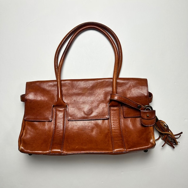 ブラウンのショルダーバッグです。フロントにポケットがふたつあります。又、折りたたみ式なので2wayとして使えます。 素材: 縦 25(折りたたんだ場合) 43(折りたたまない場合) 横40 マチ8 商品状態 C 全体的に軽くタバコの匂い 内側ファスナー付近に汚れ フロント 中央付近に汚れ 【商品状態】 A:新品未使用 B:未使用に近い物 C:一般的な古着、着用に全く問題ない状態 D:目立つ(1cm以上)破れがある ※寸法は置き方により多少にかかわらず誤差がございます。 古着の特性上、いかなる理由であっても返品交換キャンセルは出来ませんのでご了承ください。