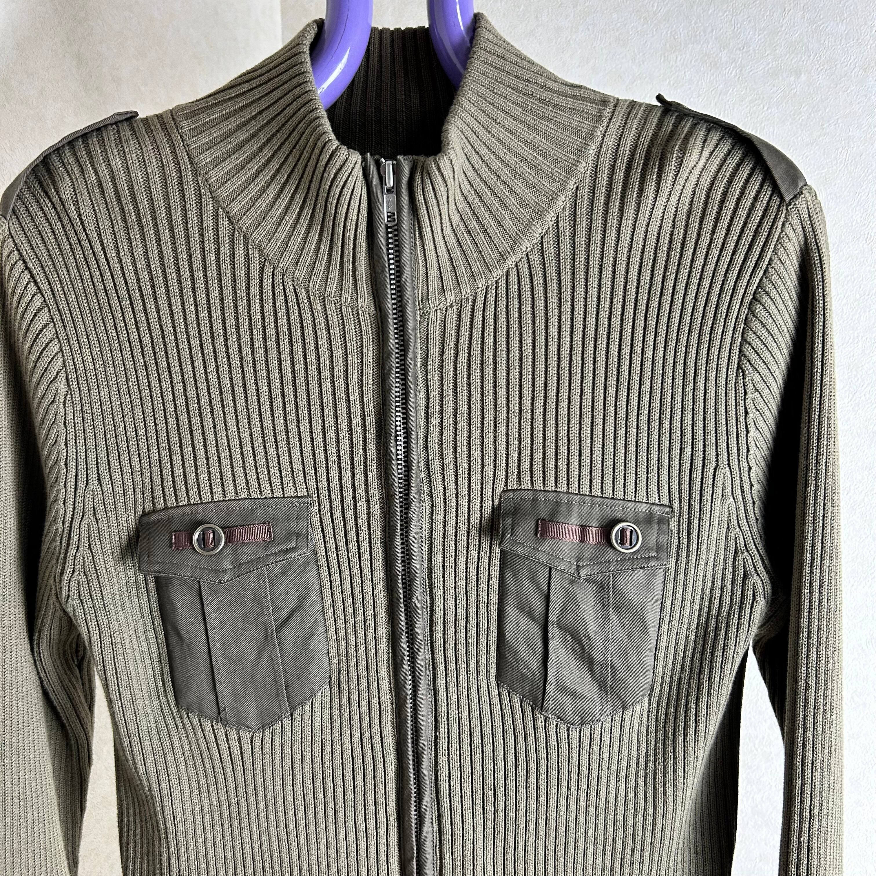 ミリタリーテイストなドライバーズニット。目立つ汚れはなくきれいな状態です。サイズはSサイズ。タイトに着たい方はかなりオススメです。