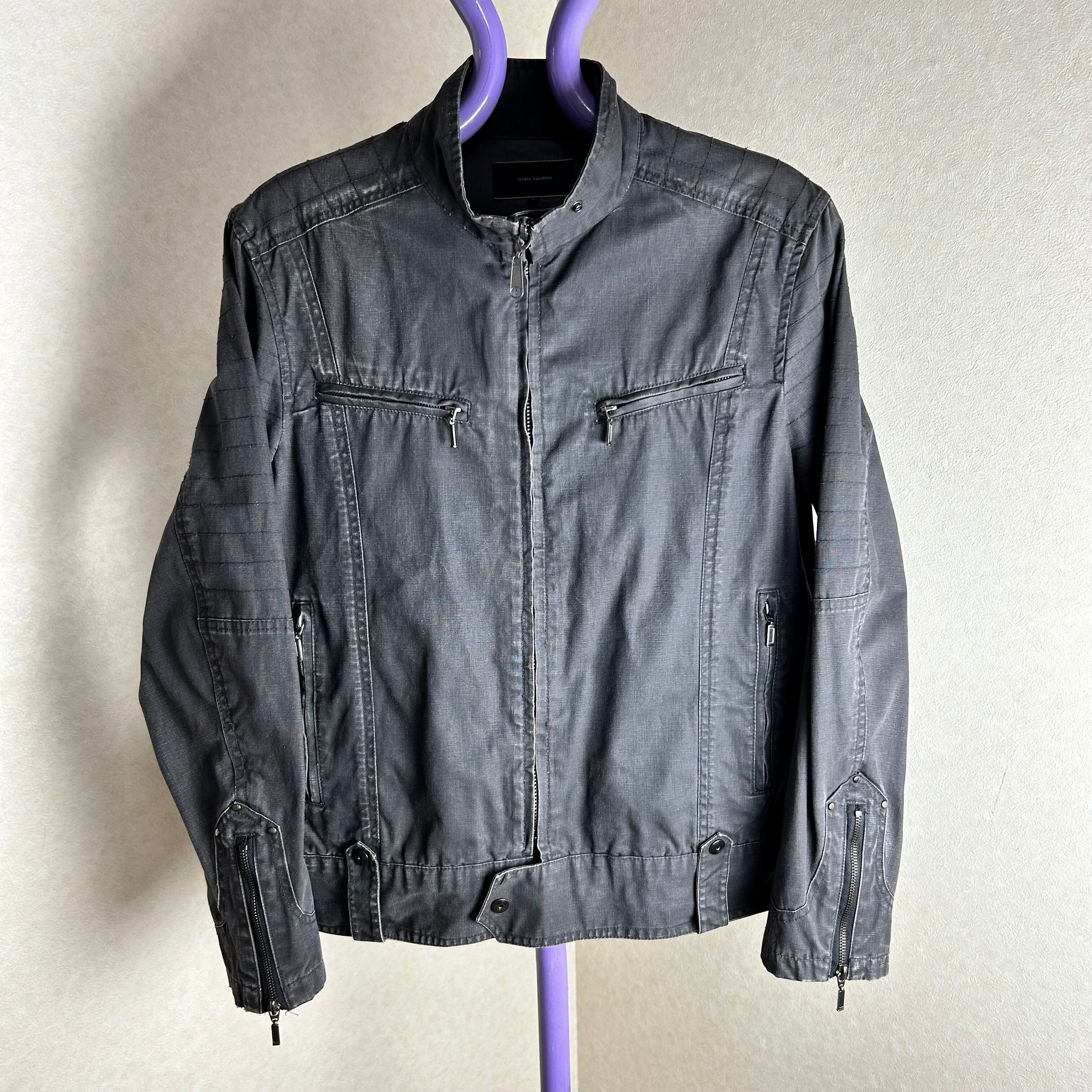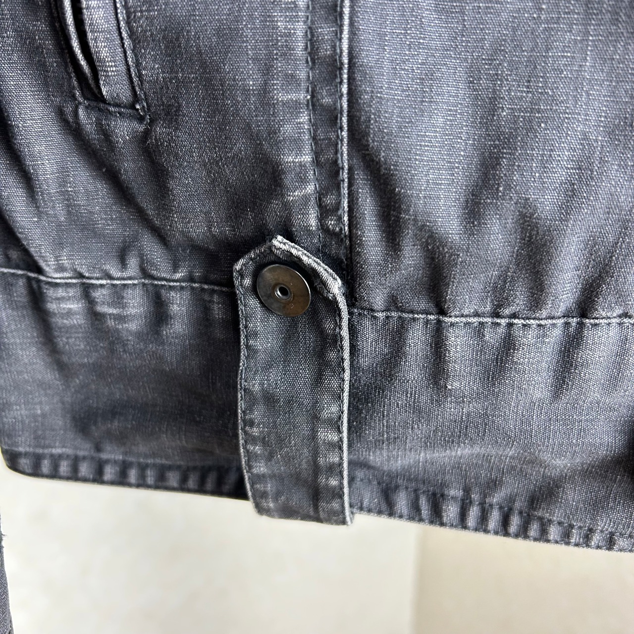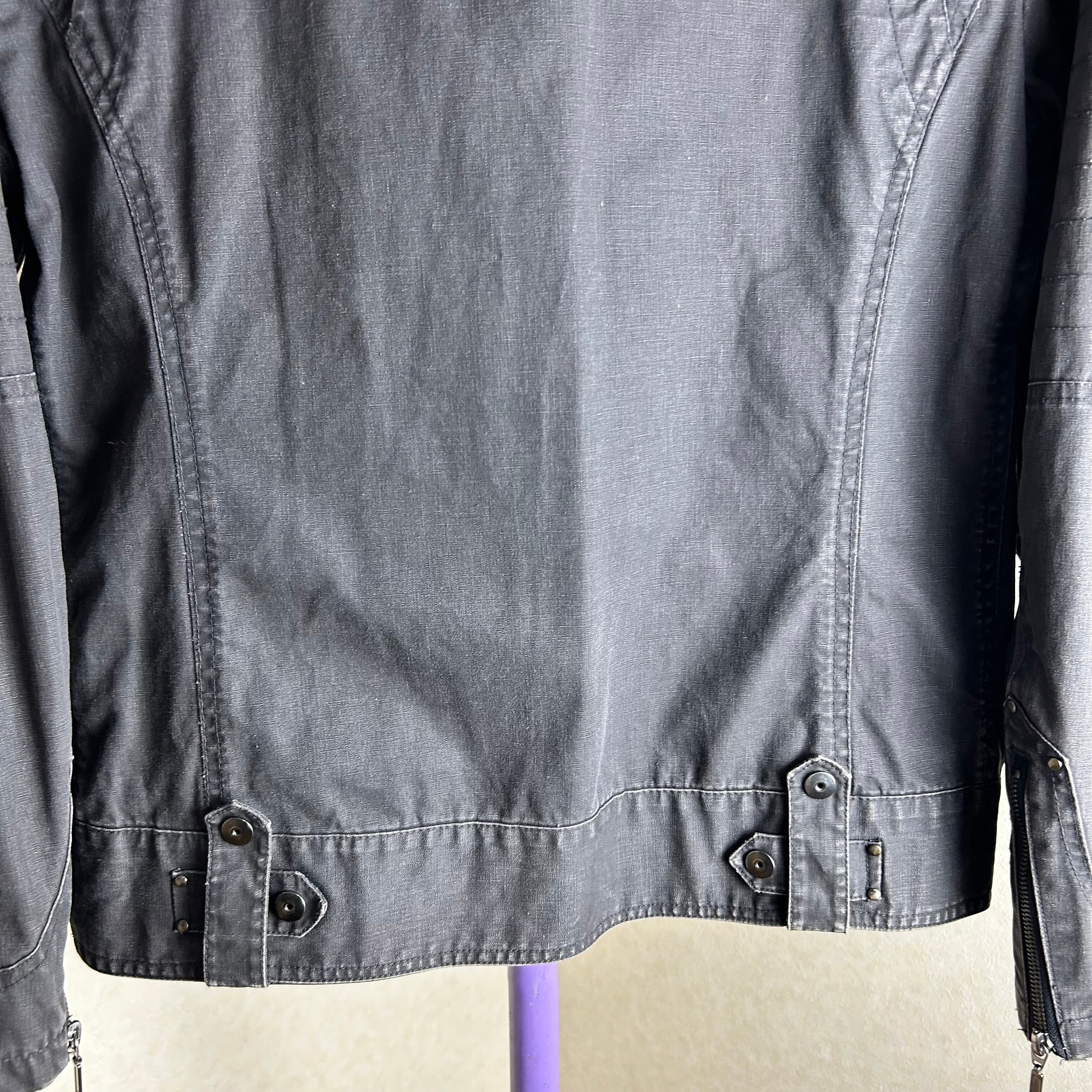 色々ギミックが施されたダークグレーのジャケット。袖にファスナーが付いていたり、裾にスナップボタンが付いていたり細かいギミック多用です。