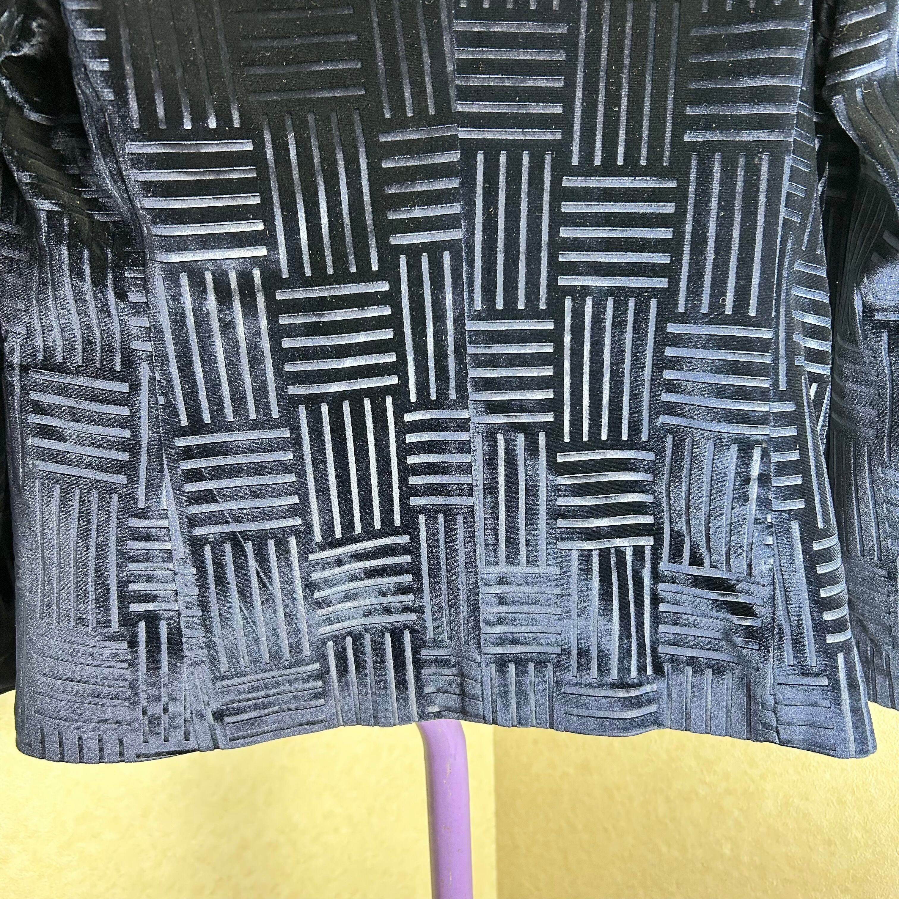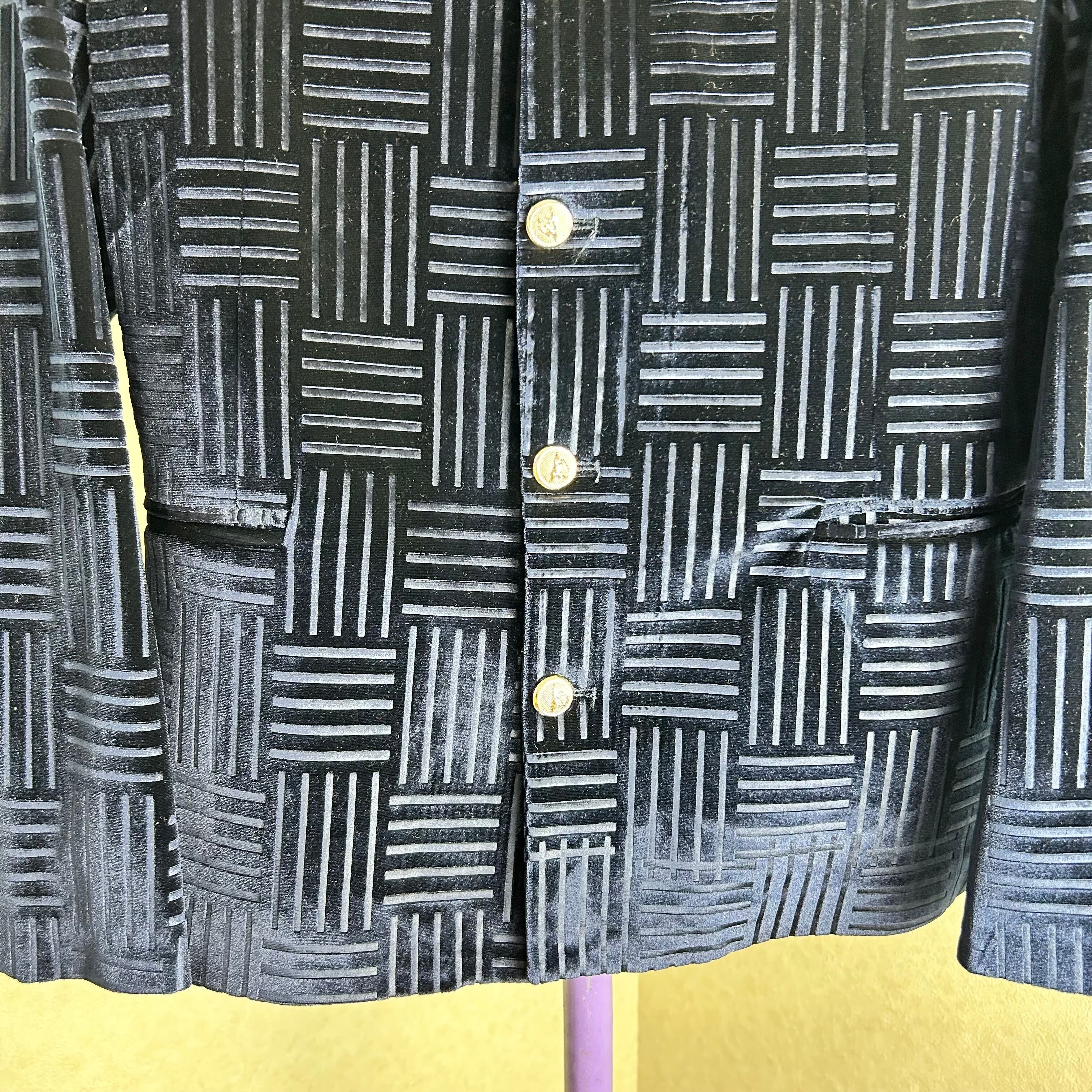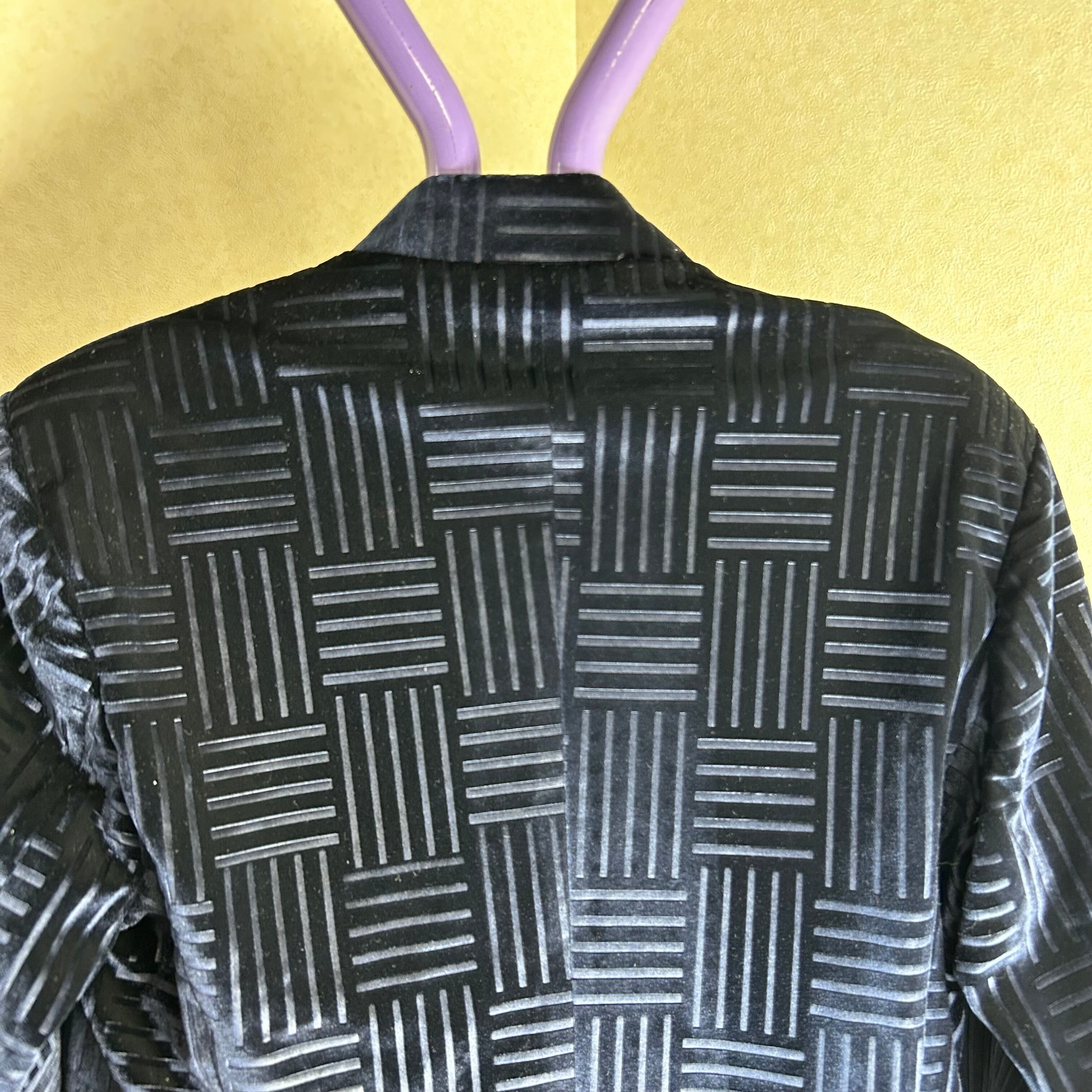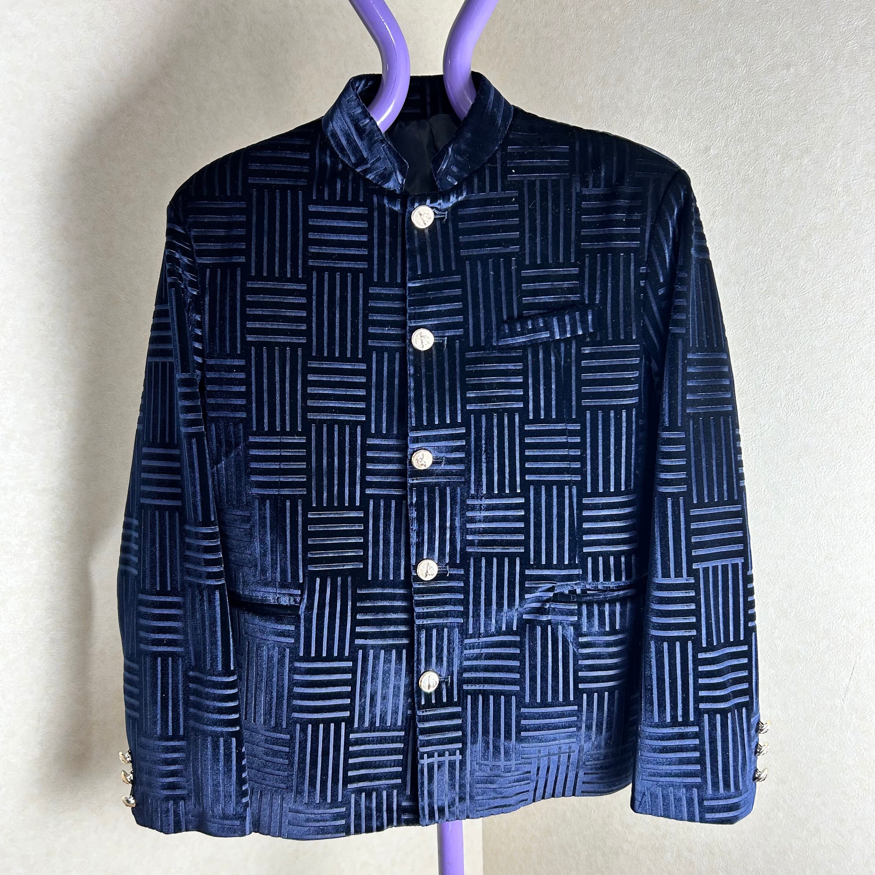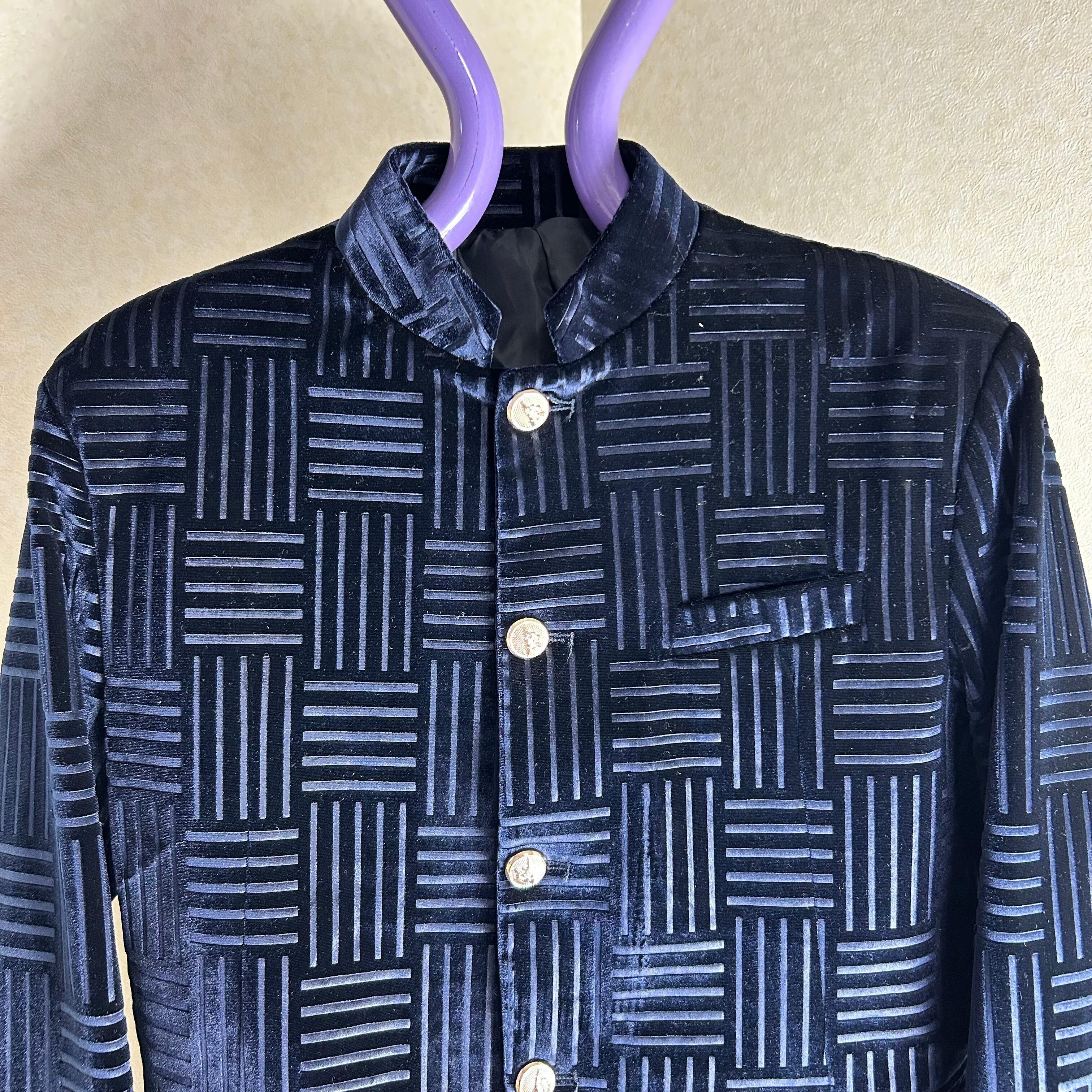 詰襟のベロアのジャケット。ボタンは鷲が施されています。幾何学模様がブロック状になってます。