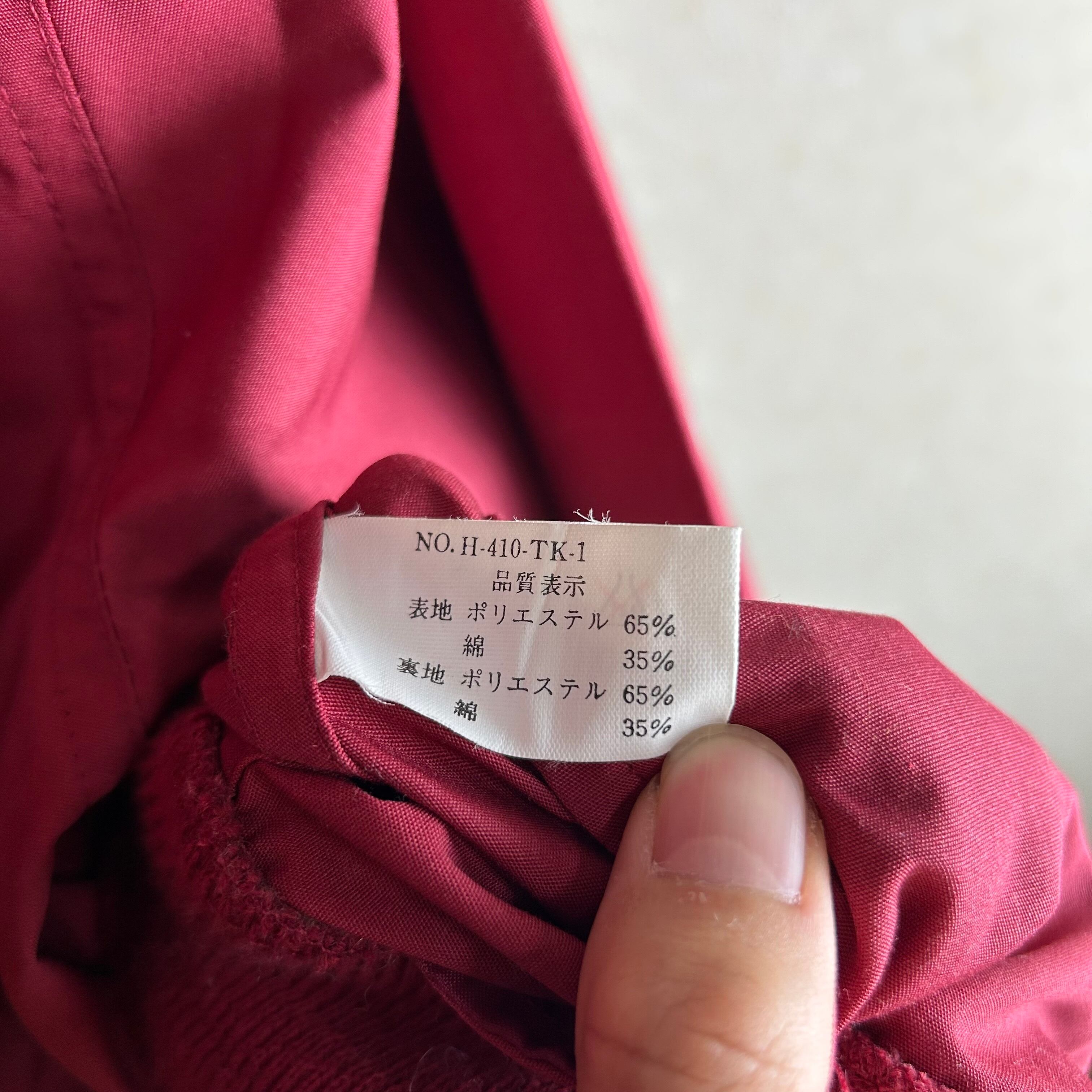 このハリントンジャケットのタグは『UNIQLO』という表記が生まれた88年以降から94年までの間のタグだと思われます。主張のないレッドのカラーです。