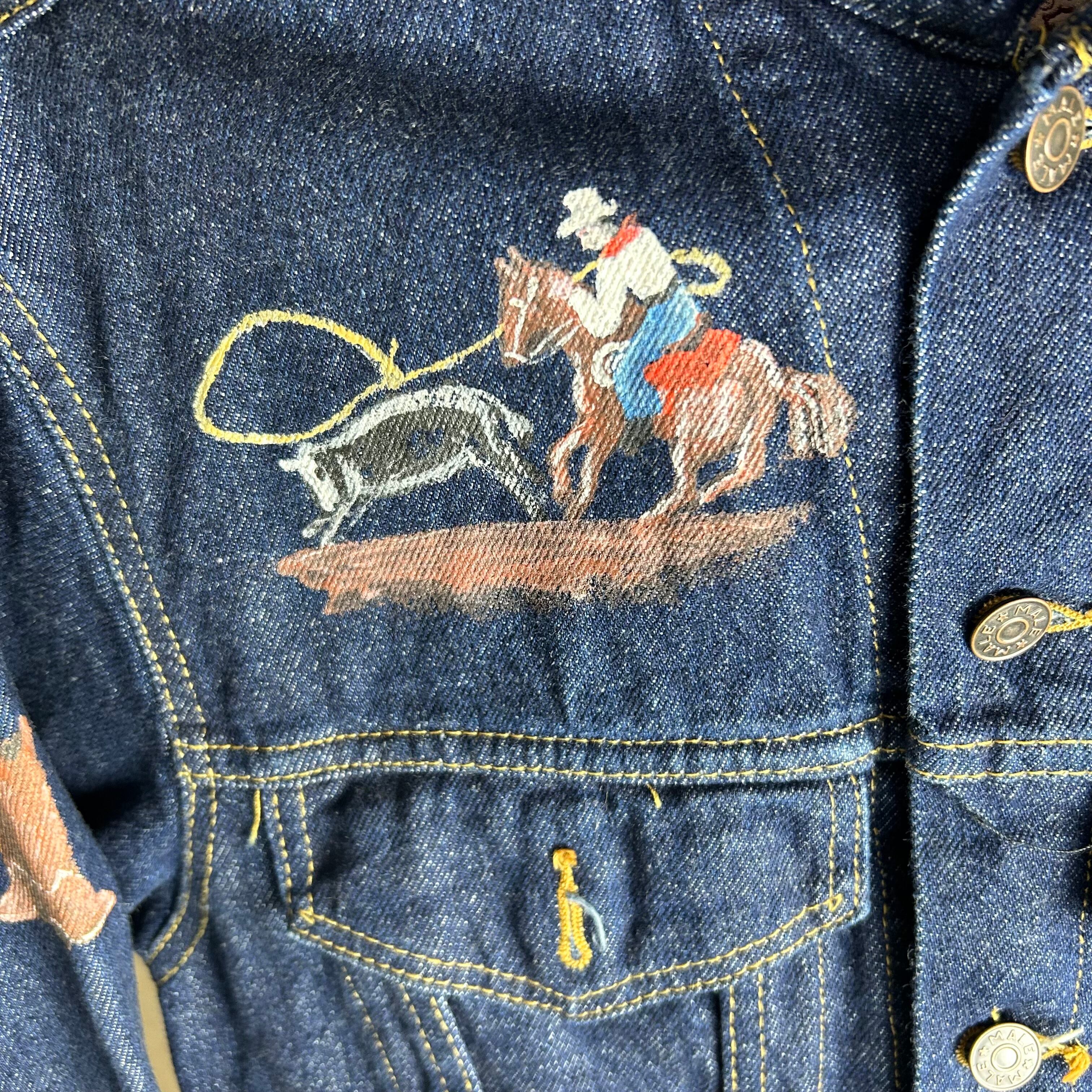 vintage western painting denim jacket