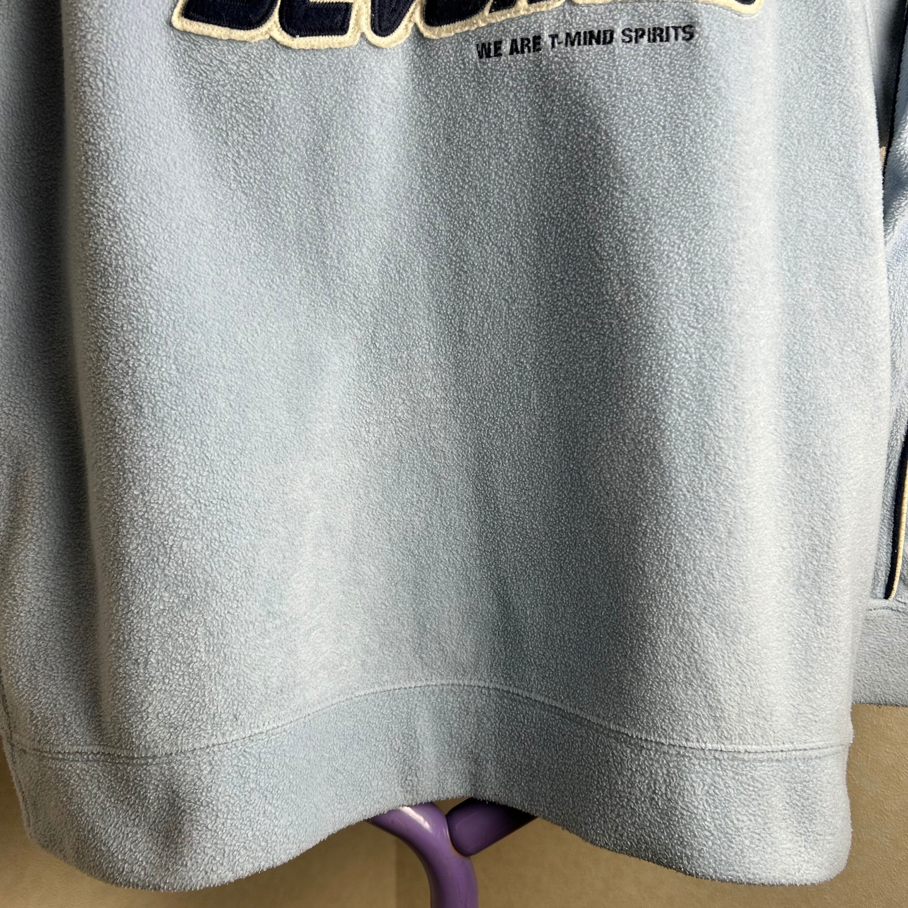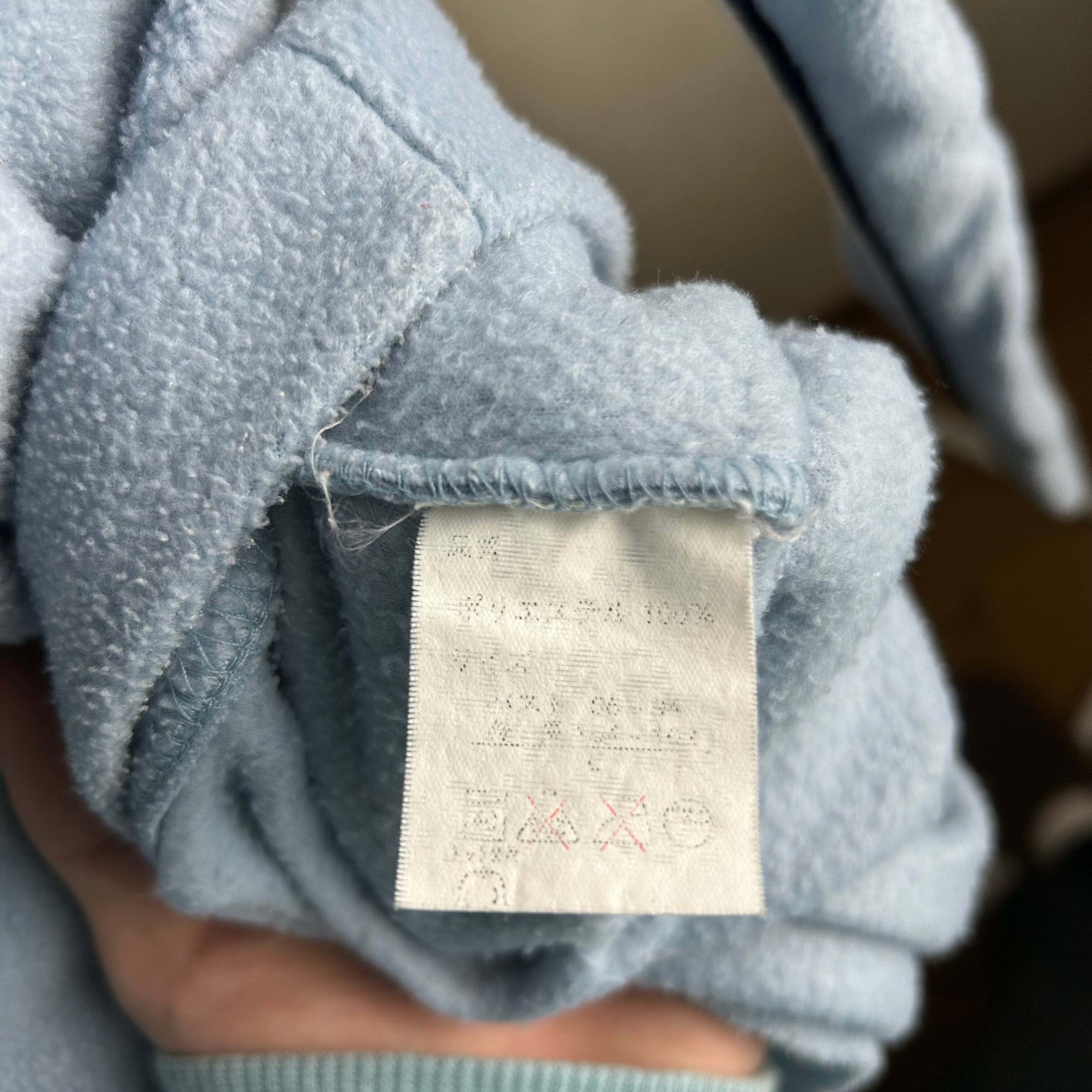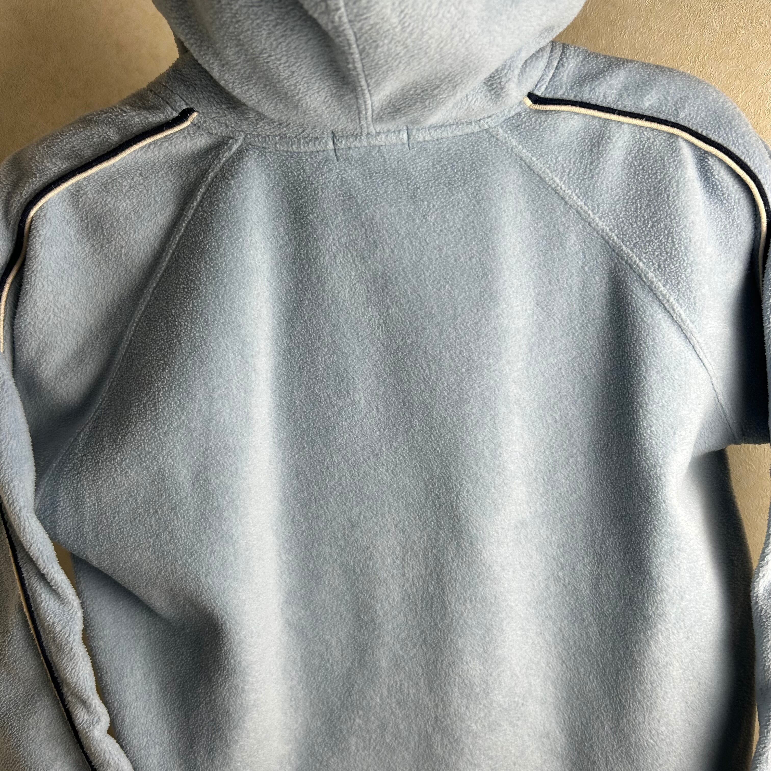 フリース素材のパーカーです。カラーはライトブルーでデザインはテック感のあるデザインになってます。表記はLですがメンズだとSサイズくらいです。