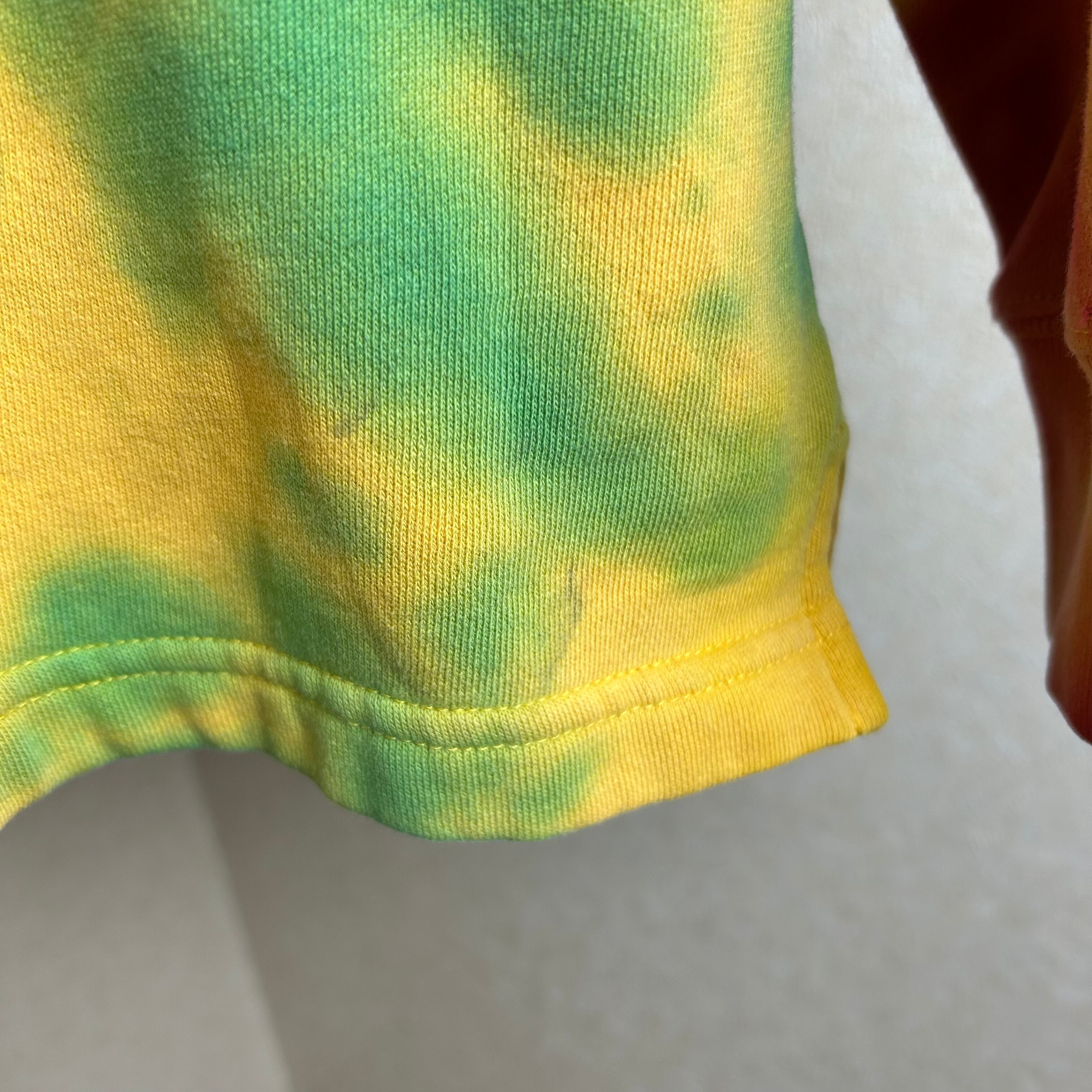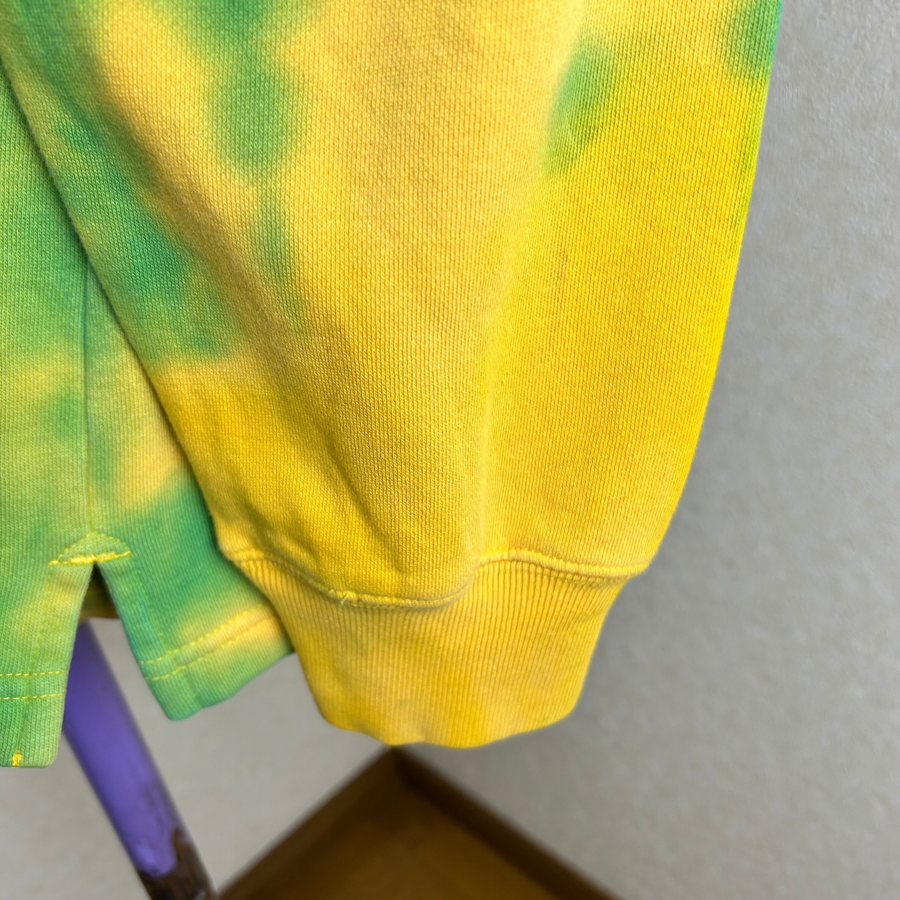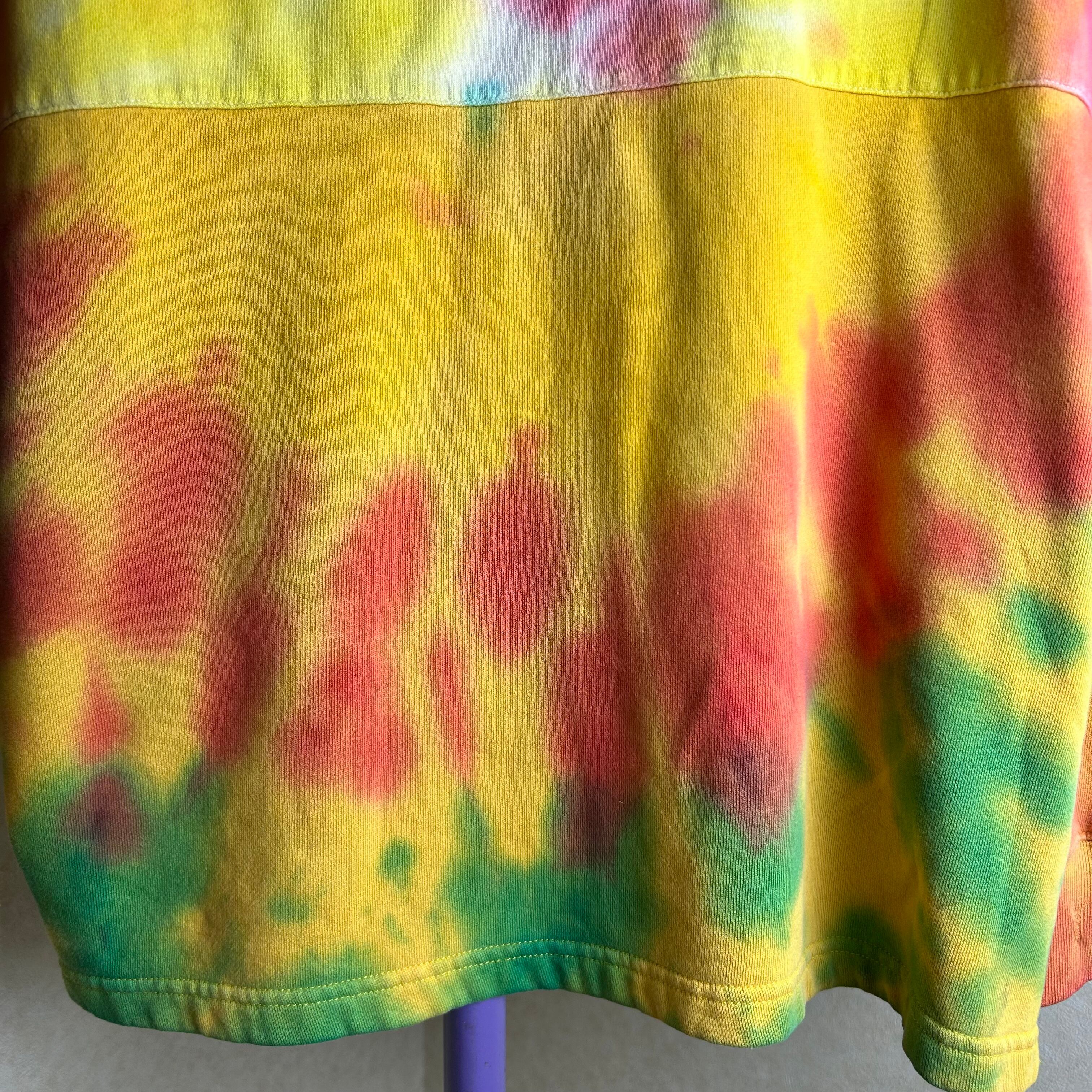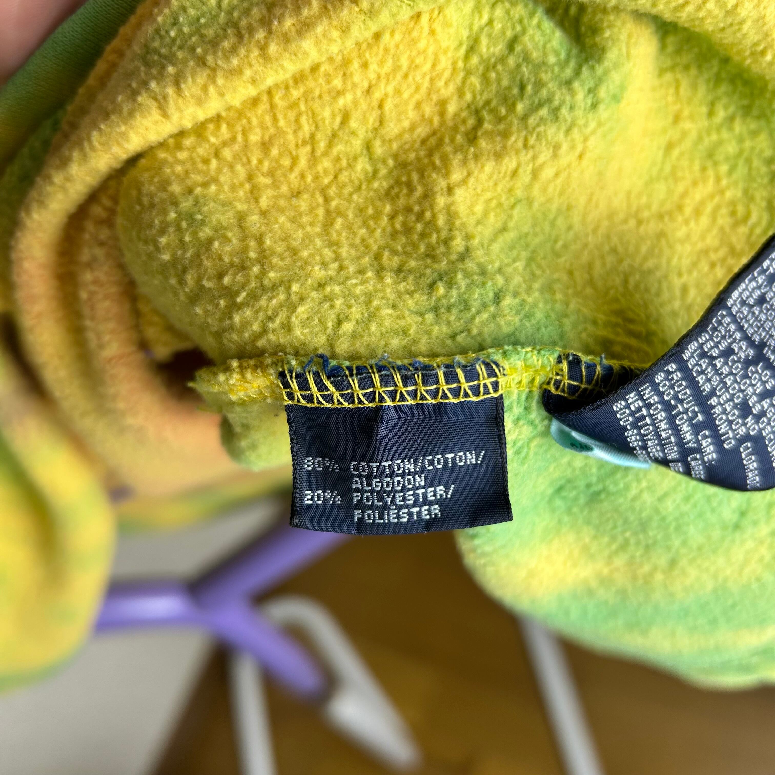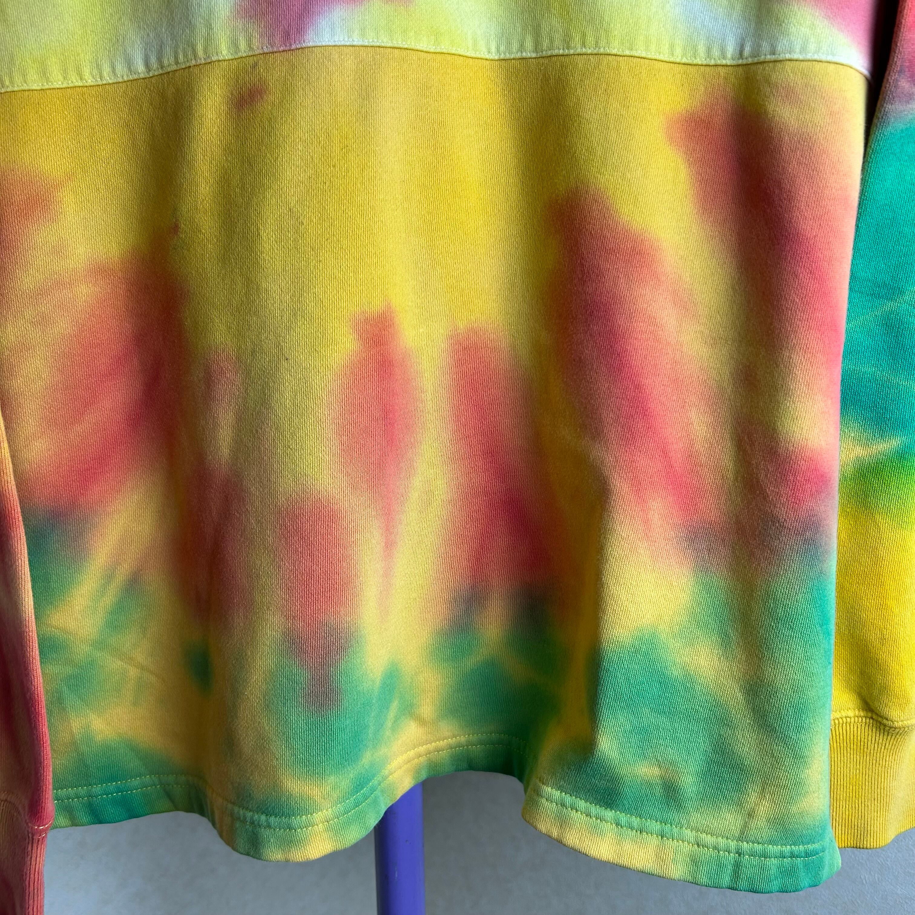 TOMMY HILFIGERのハーフジップのスウェットです。おそらく、元は黒と白だったと思うのですがタイダイ柄に染められています。一見派手ですが、実際着てみるとスタイリングの邪魔はしないです。