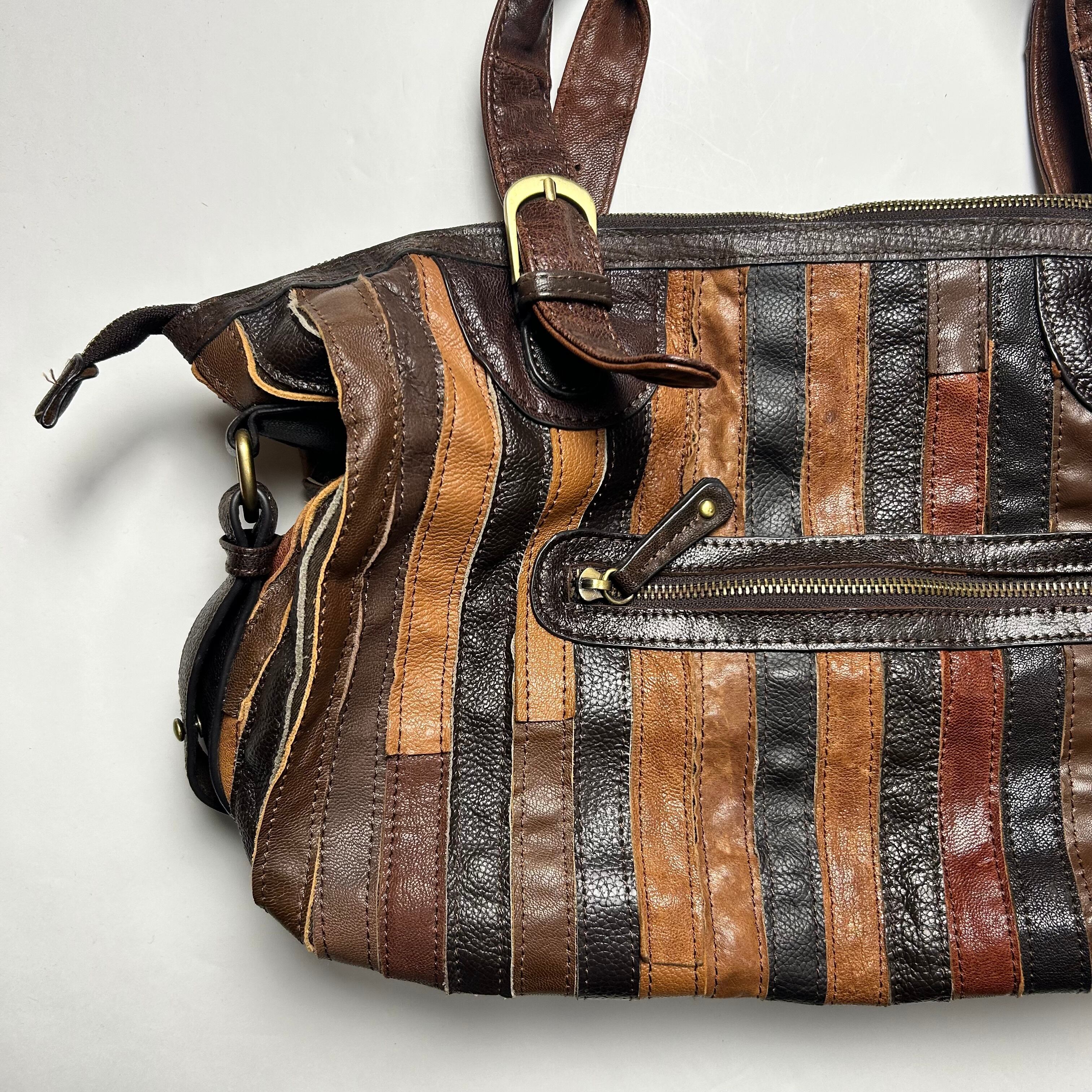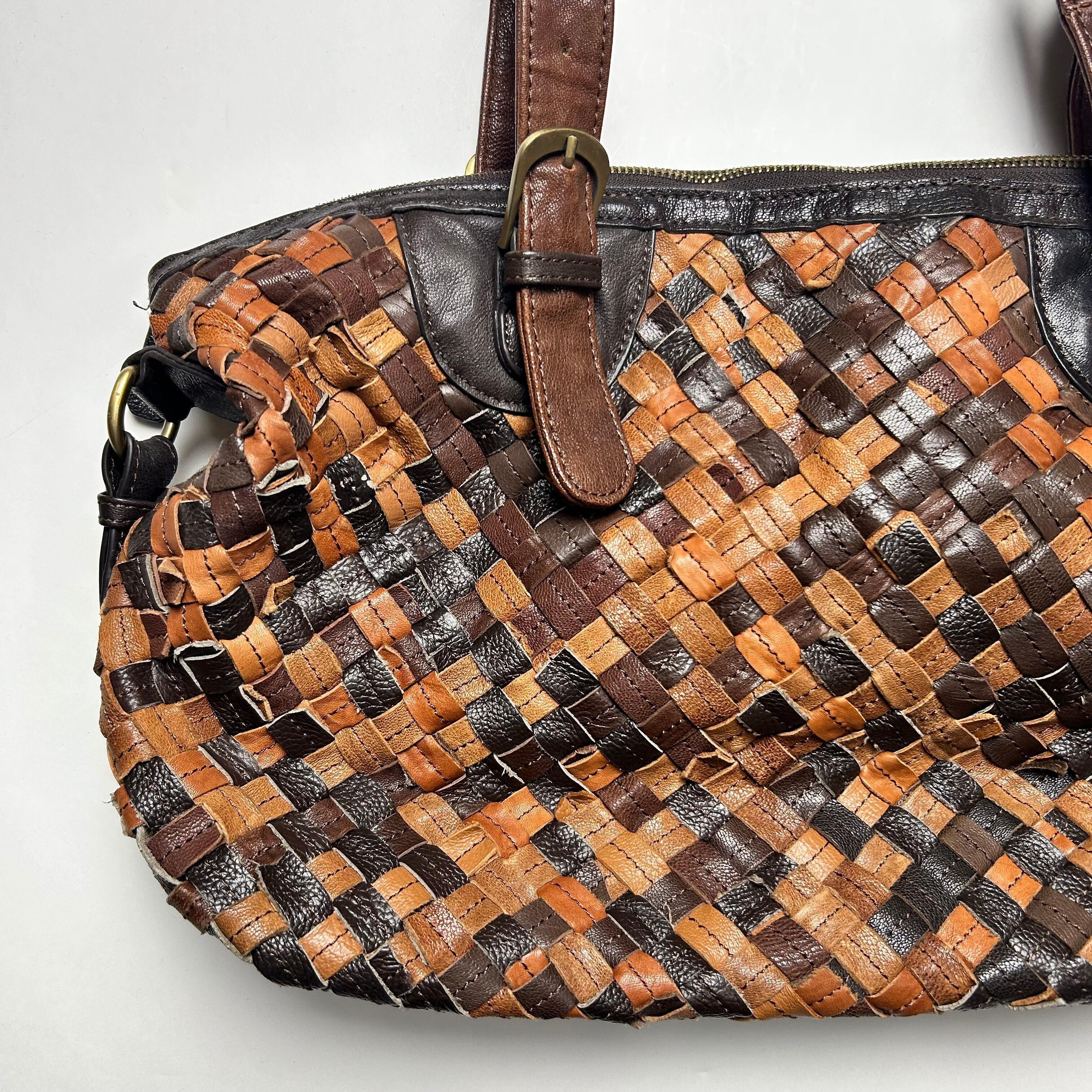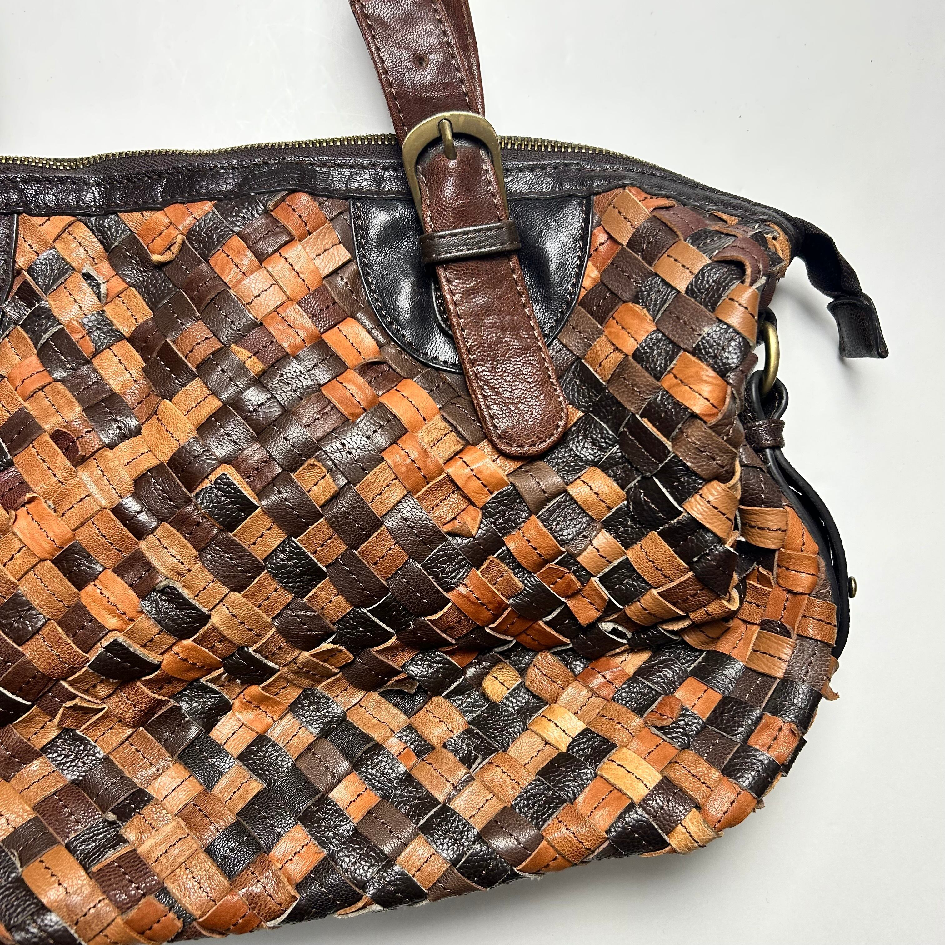 vintage brown braid stripe shoulder bag