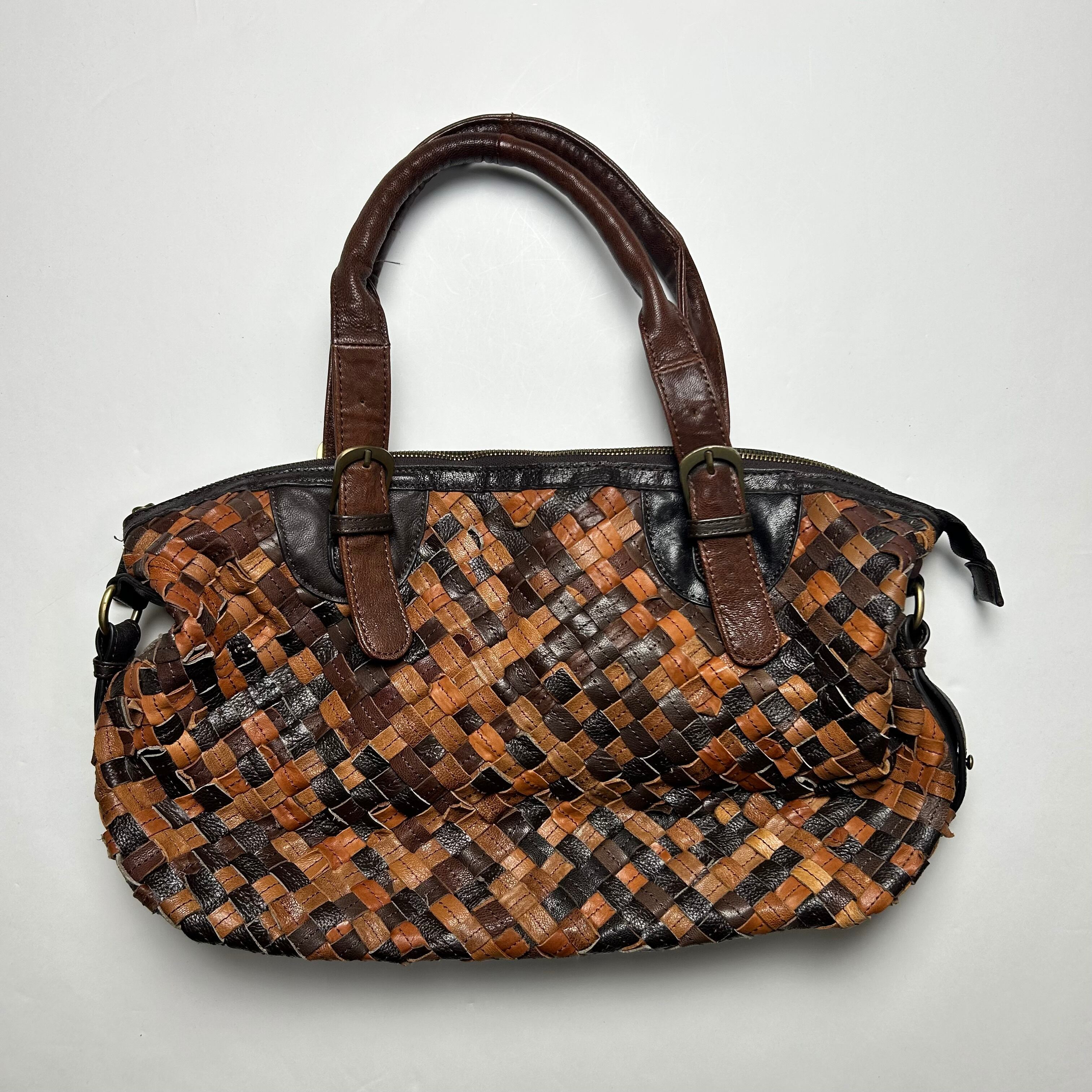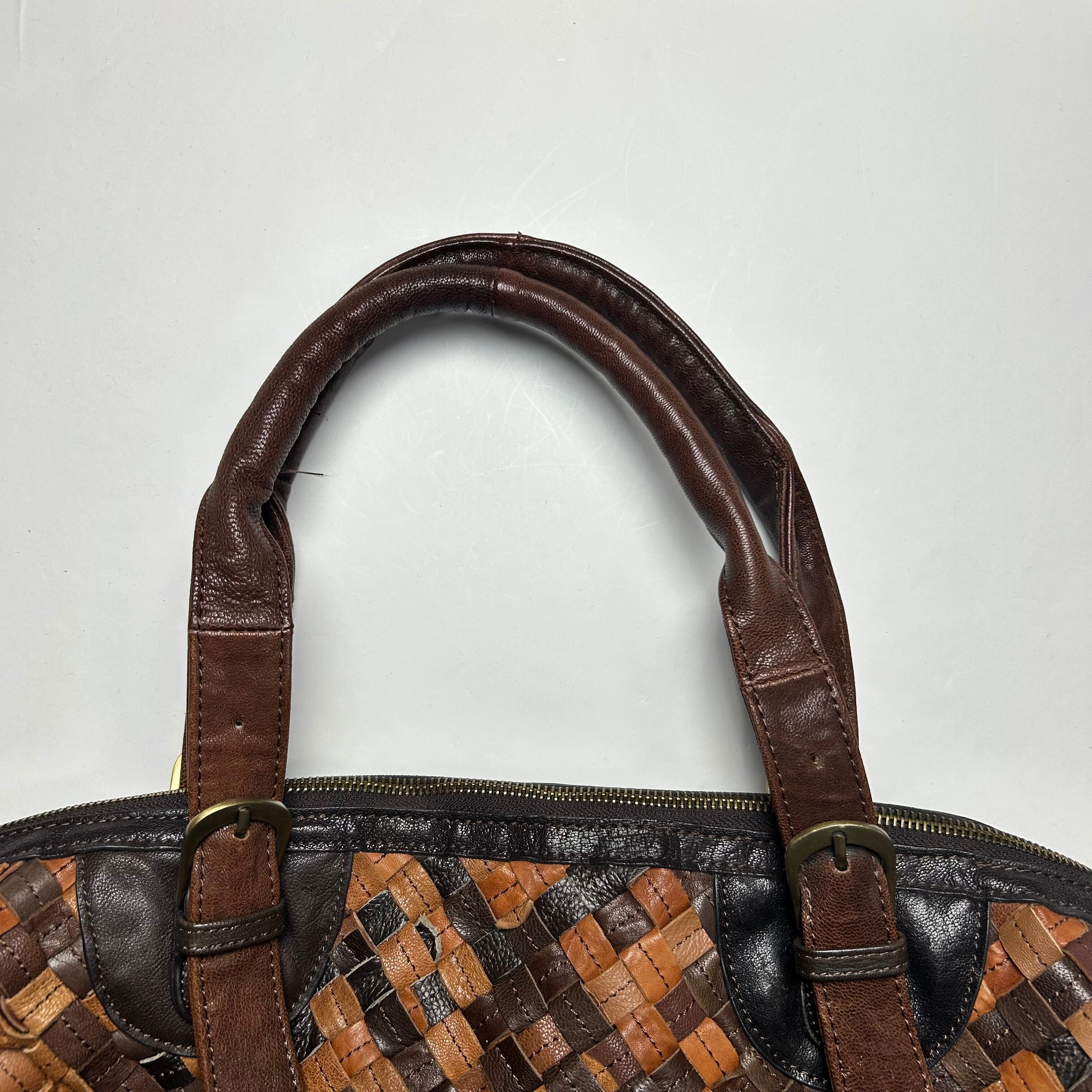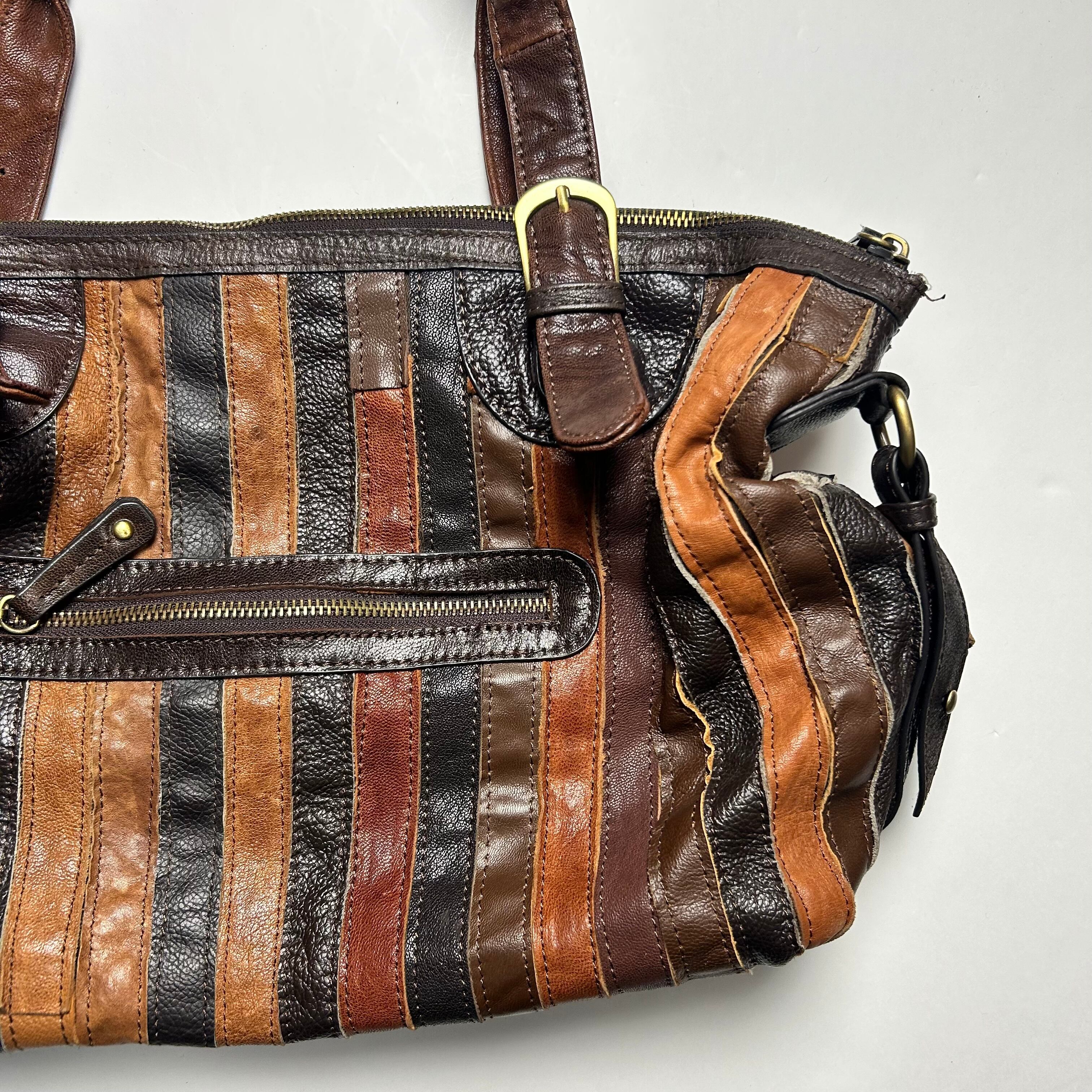vintage brown braid stripe shoulder bag