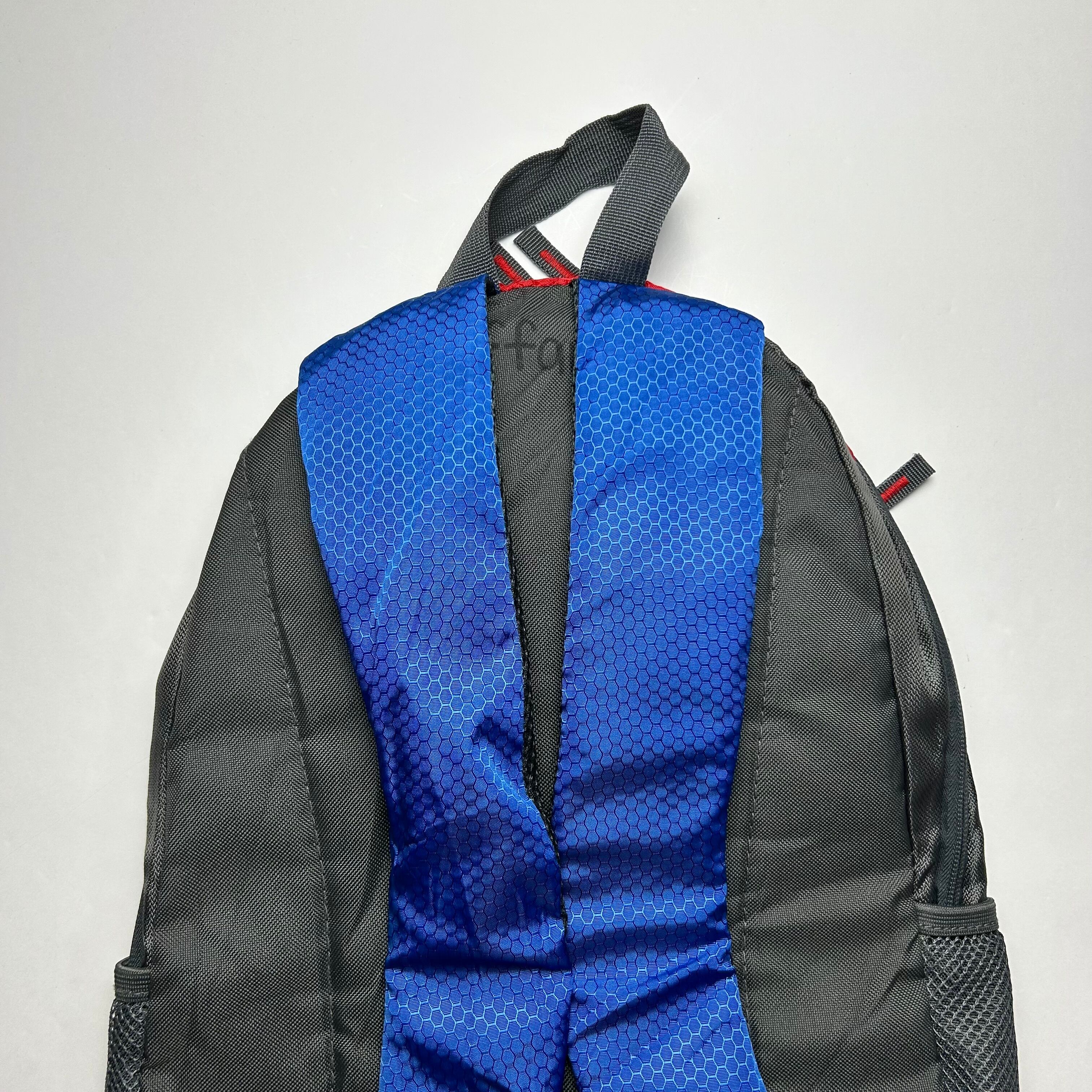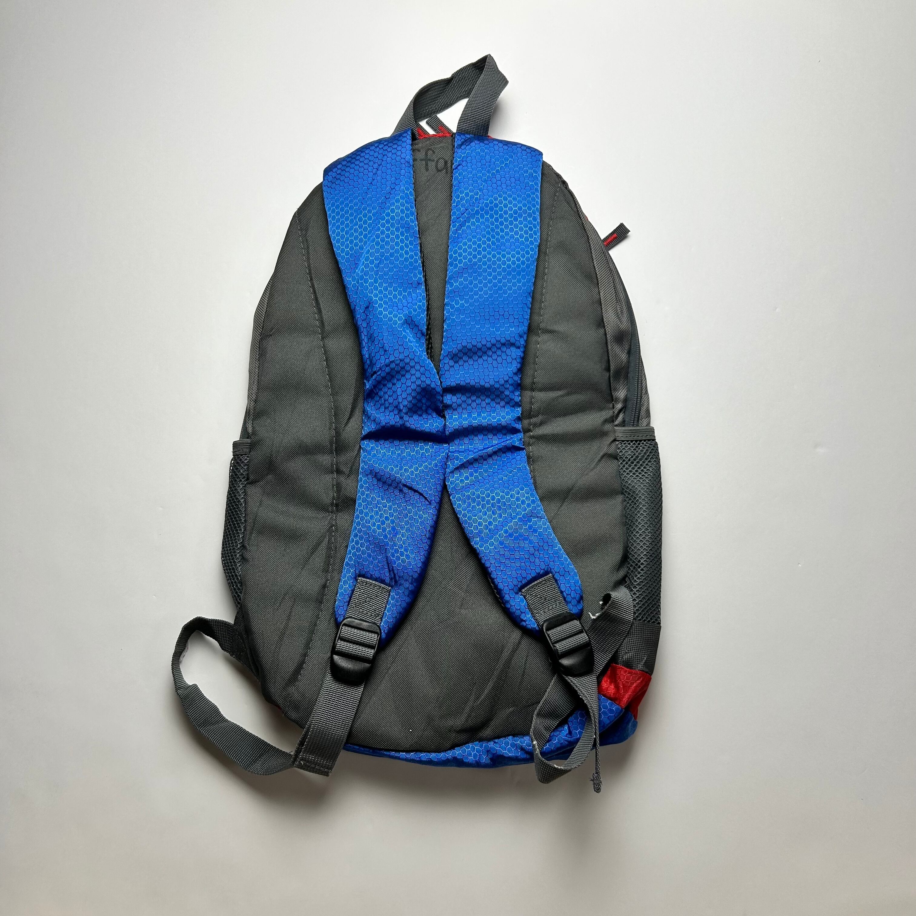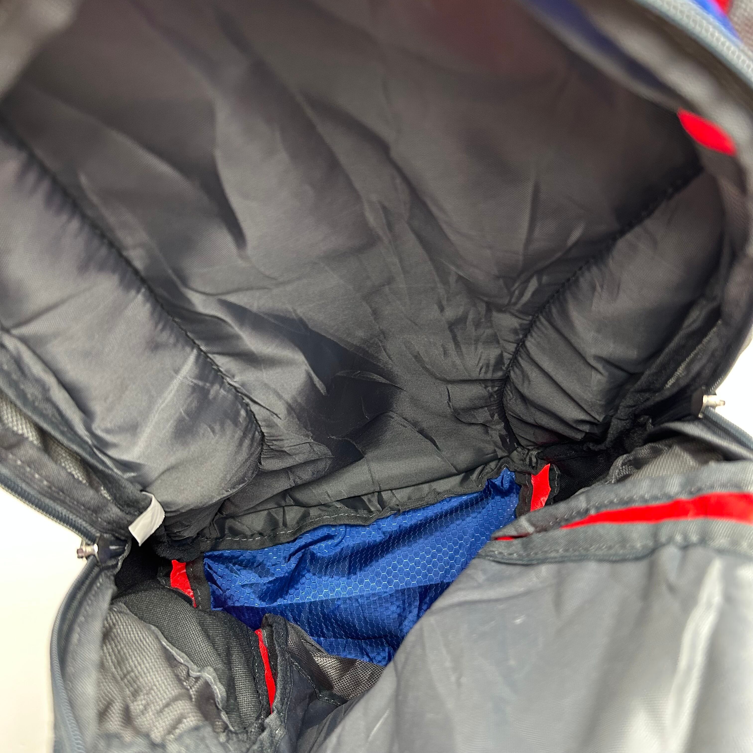 赤、青、グレーの3色で構成されたリュックです。絶妙な配色でフロントにはSPACE CAMPと書かれていてユーモアの溢れる商品です。