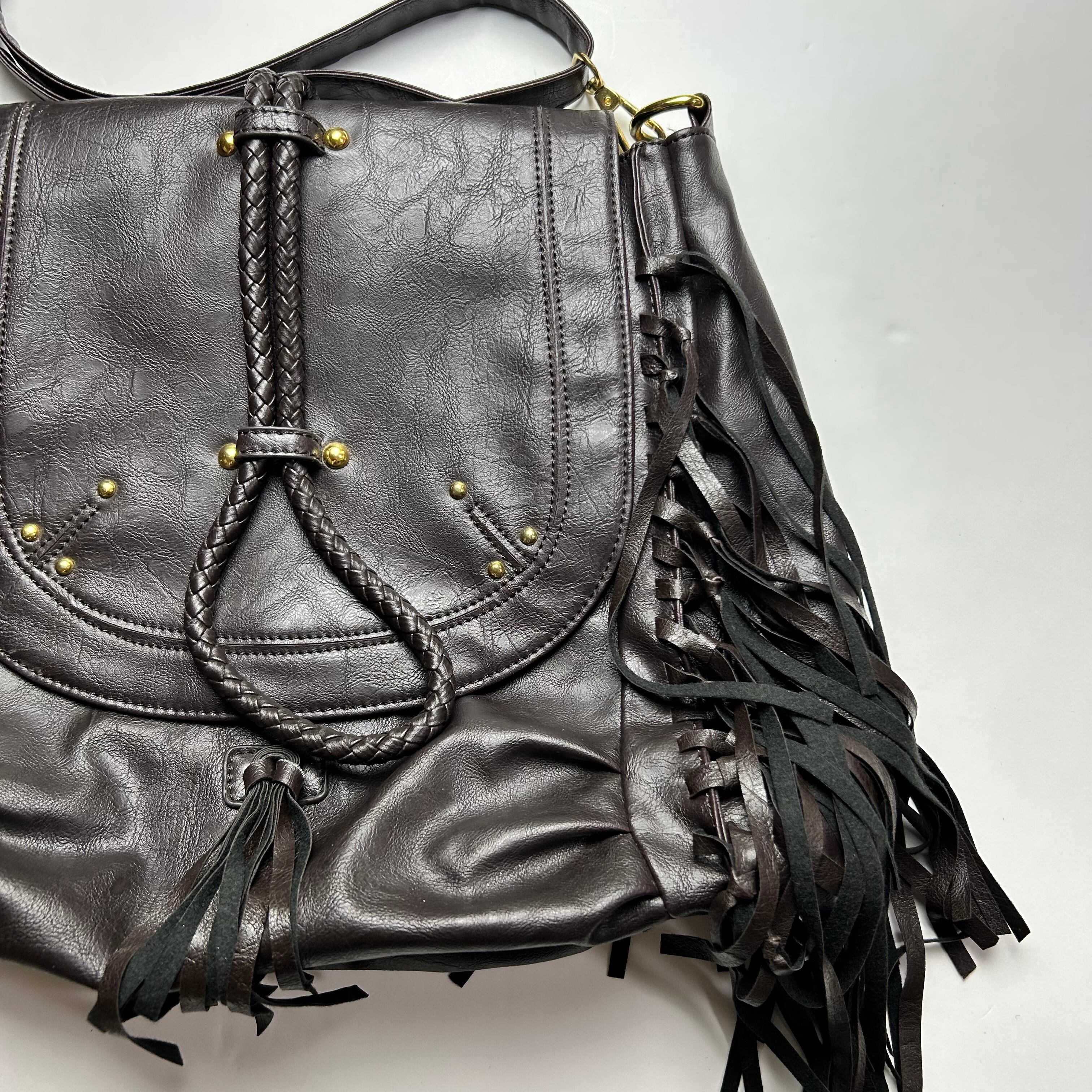 ブラックのフリンジのついたショルダーバッグになります。スタッズも付いていてY2Kの雰囲気が随分感じられる商品になってます。