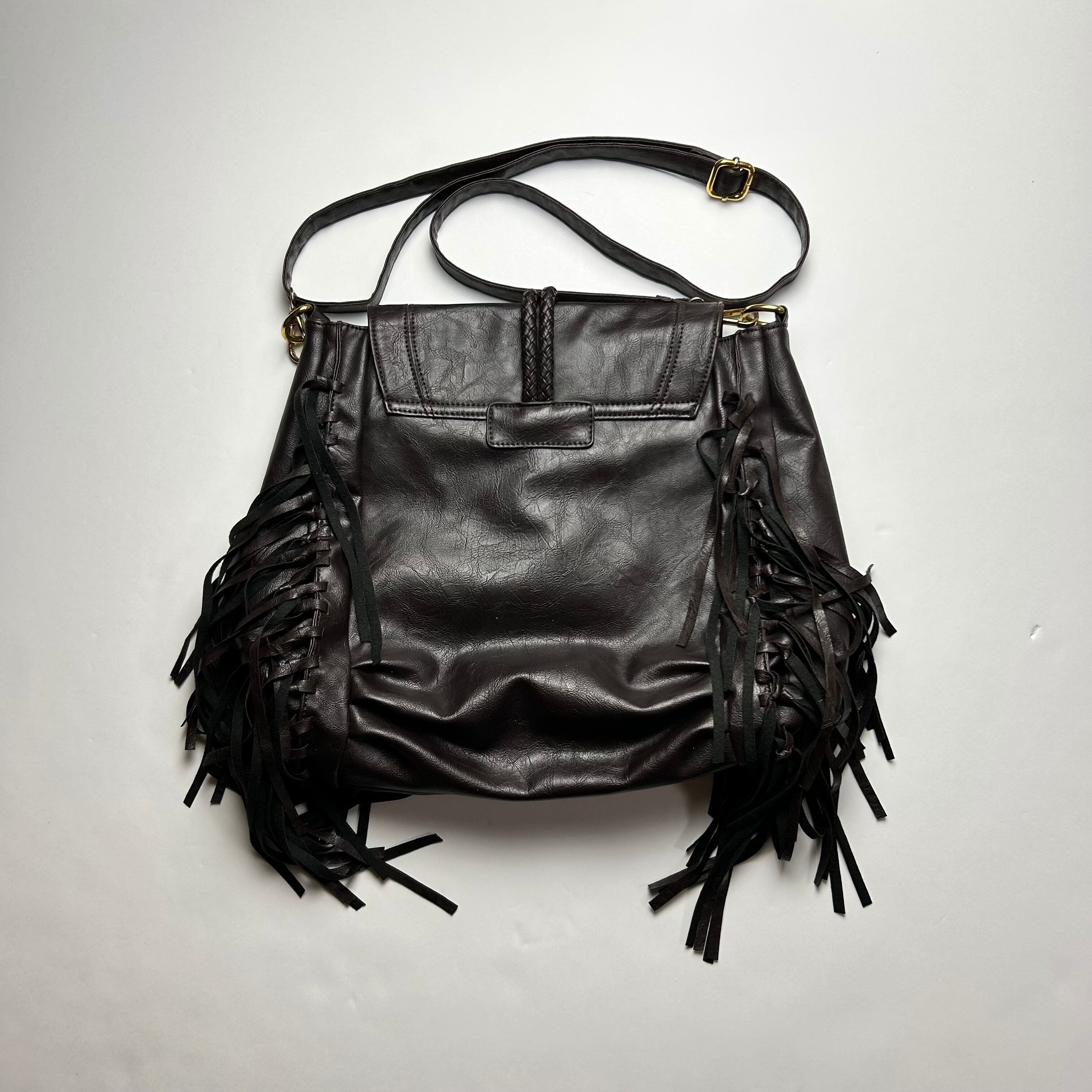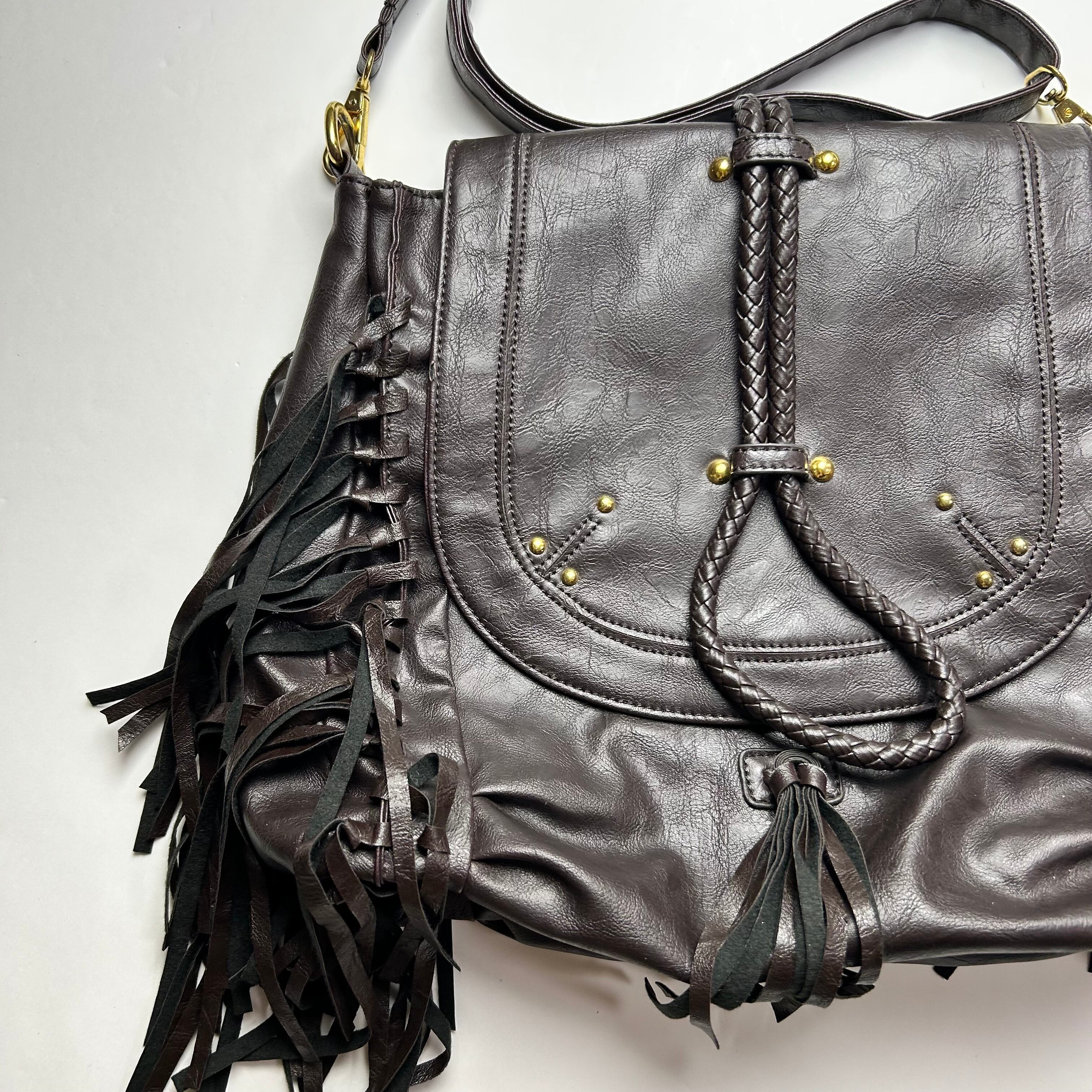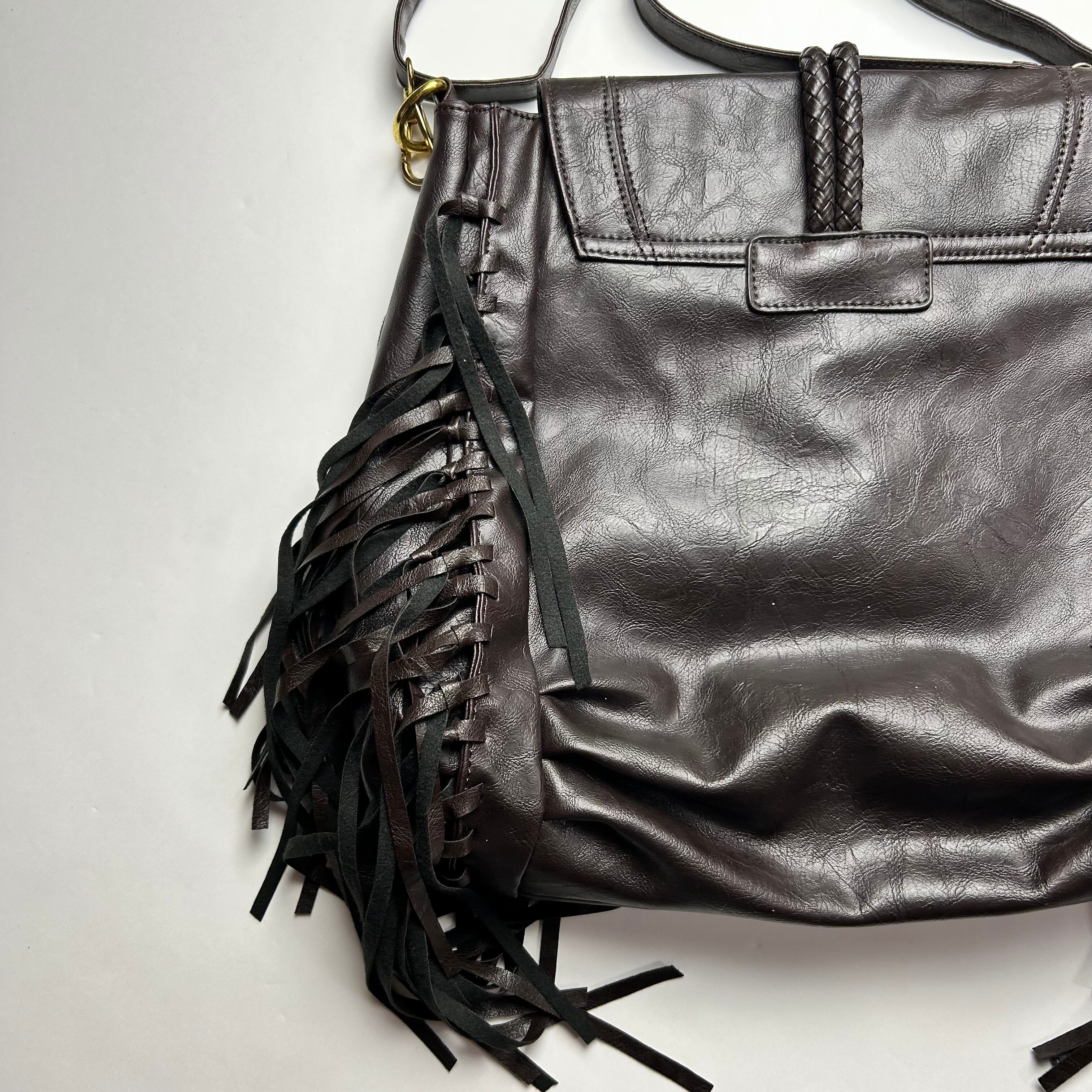 vintage black fringe Y2K shoulder bag