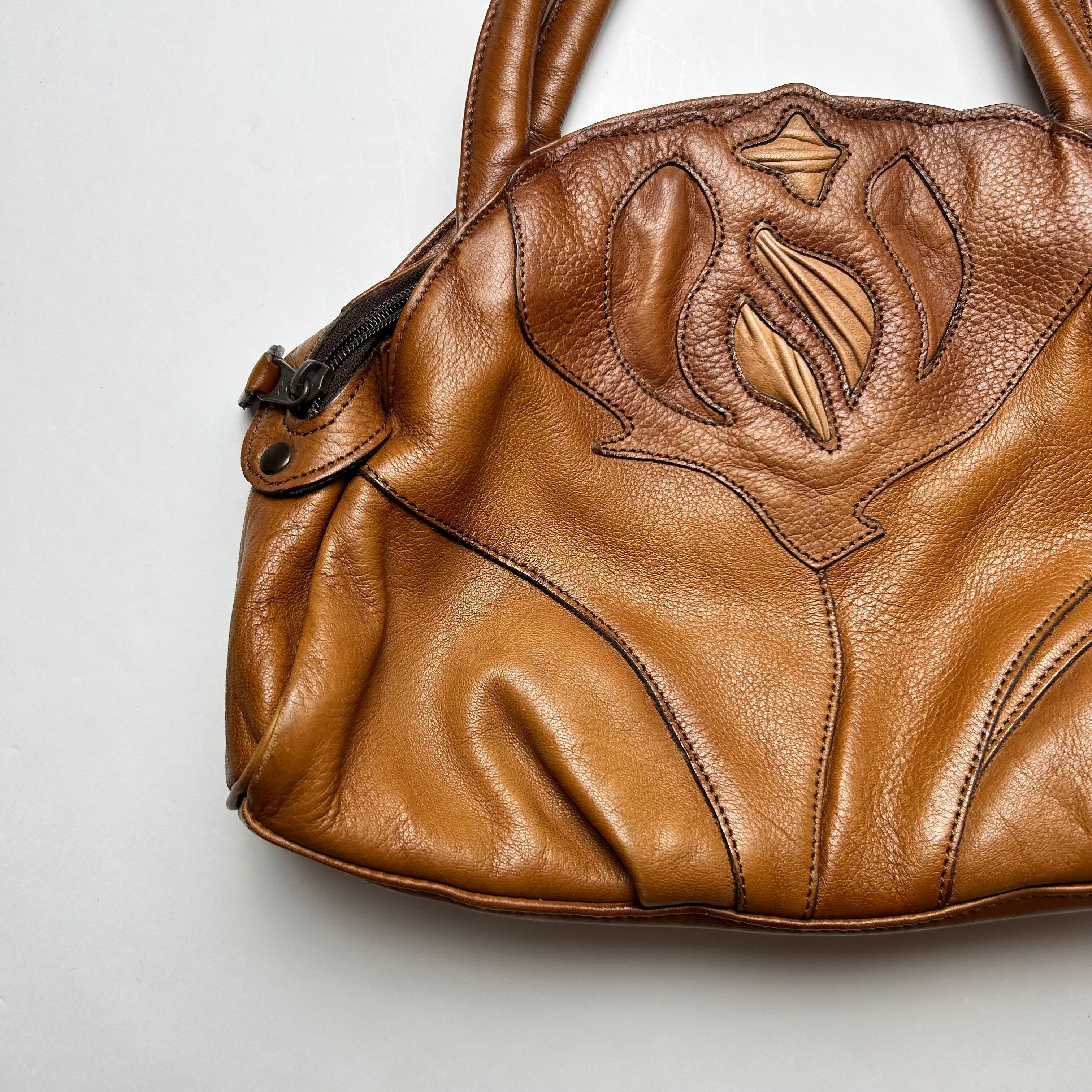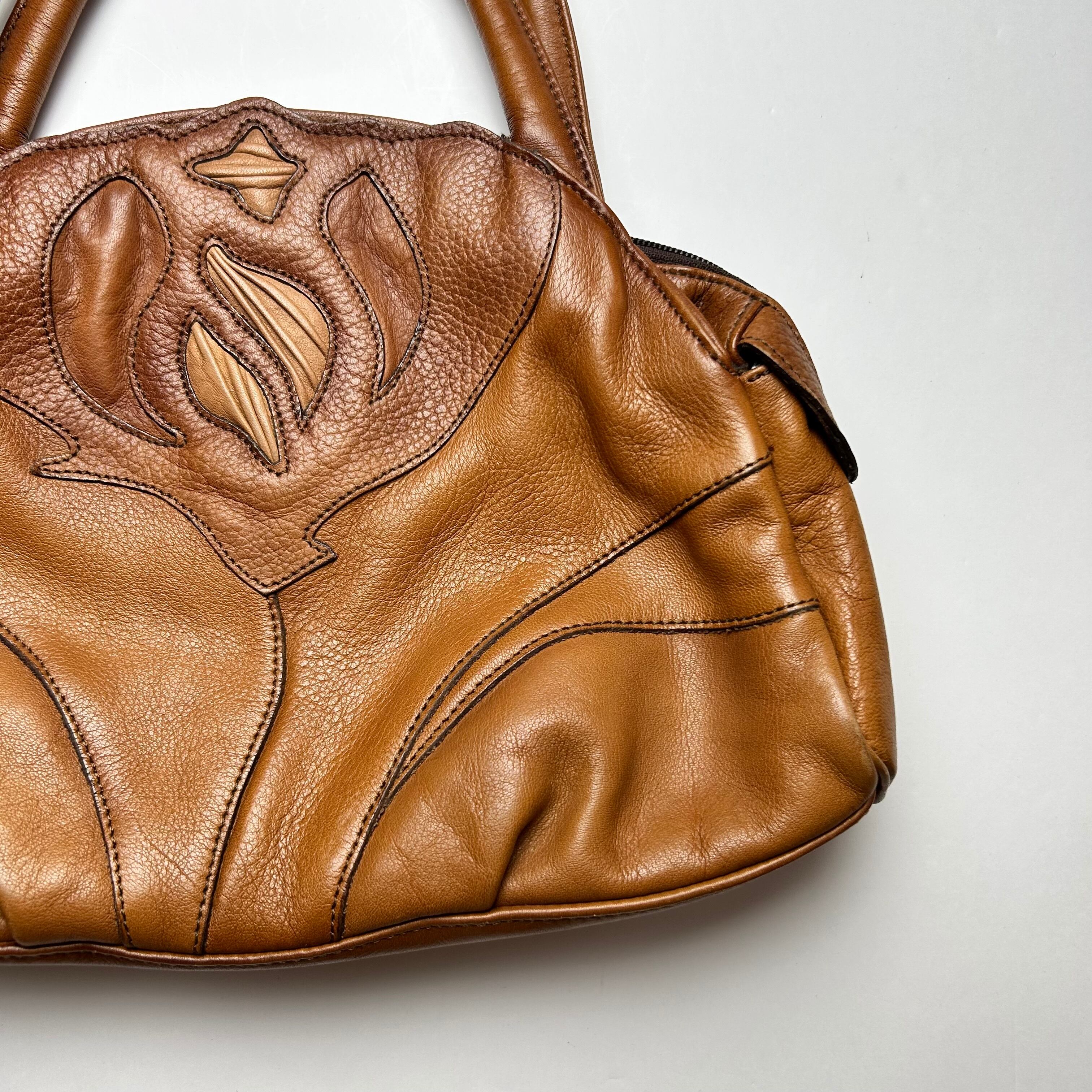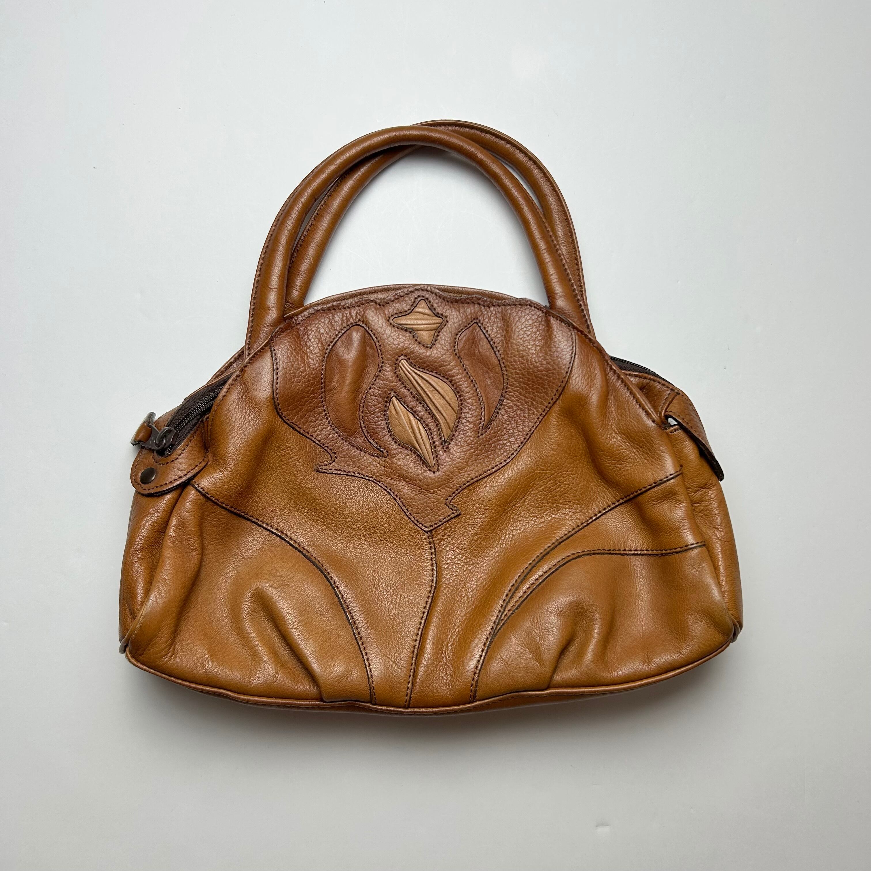vintage brown flower hand bag