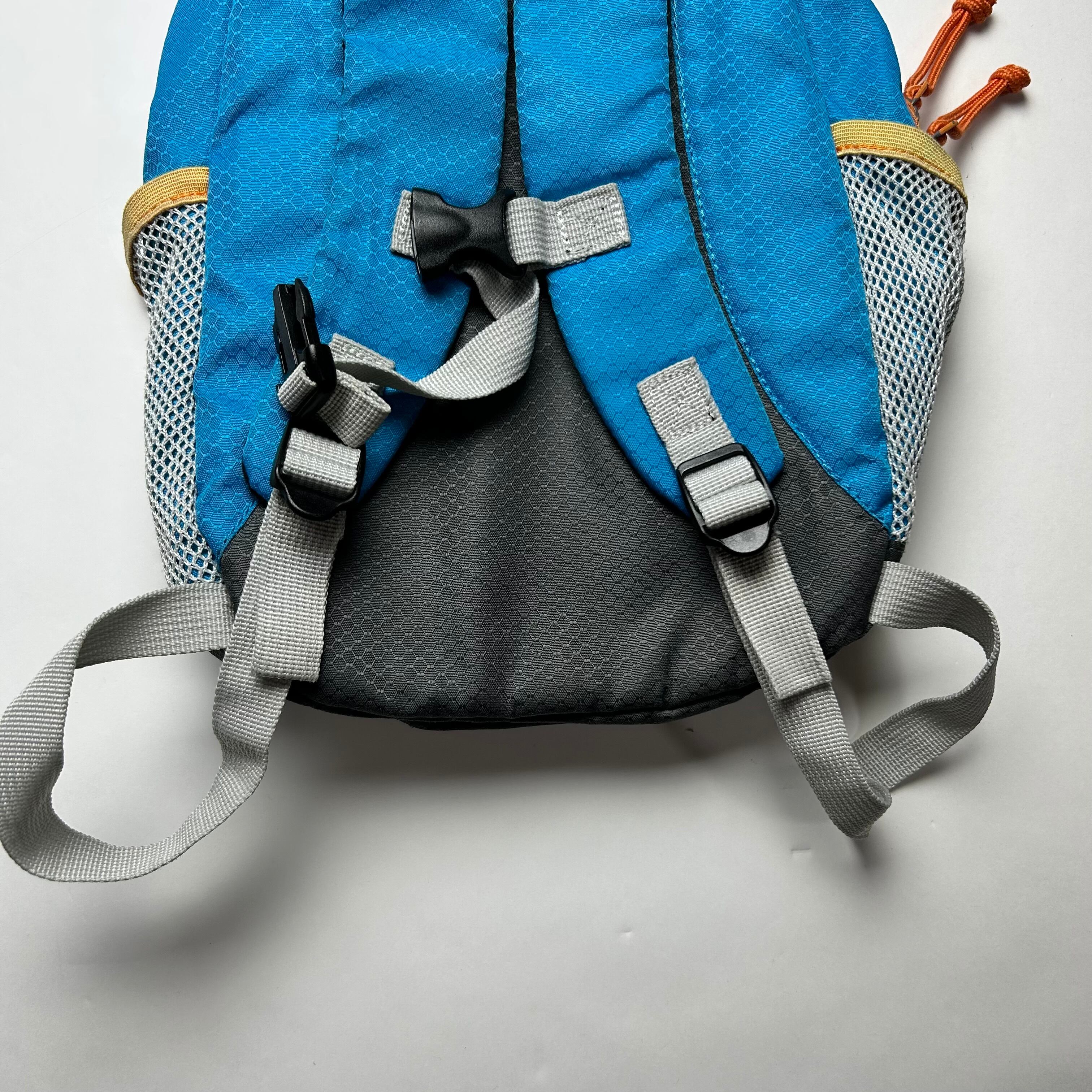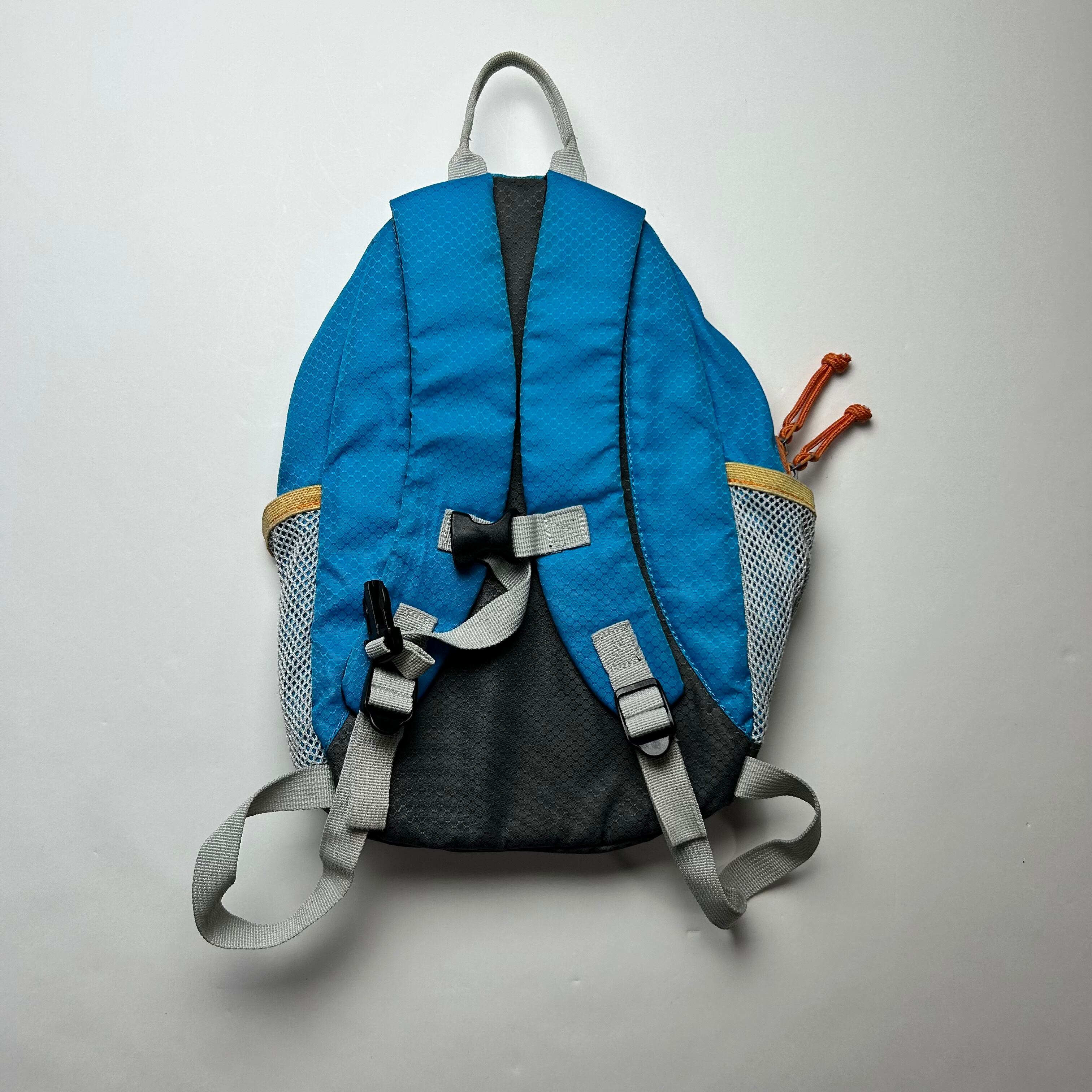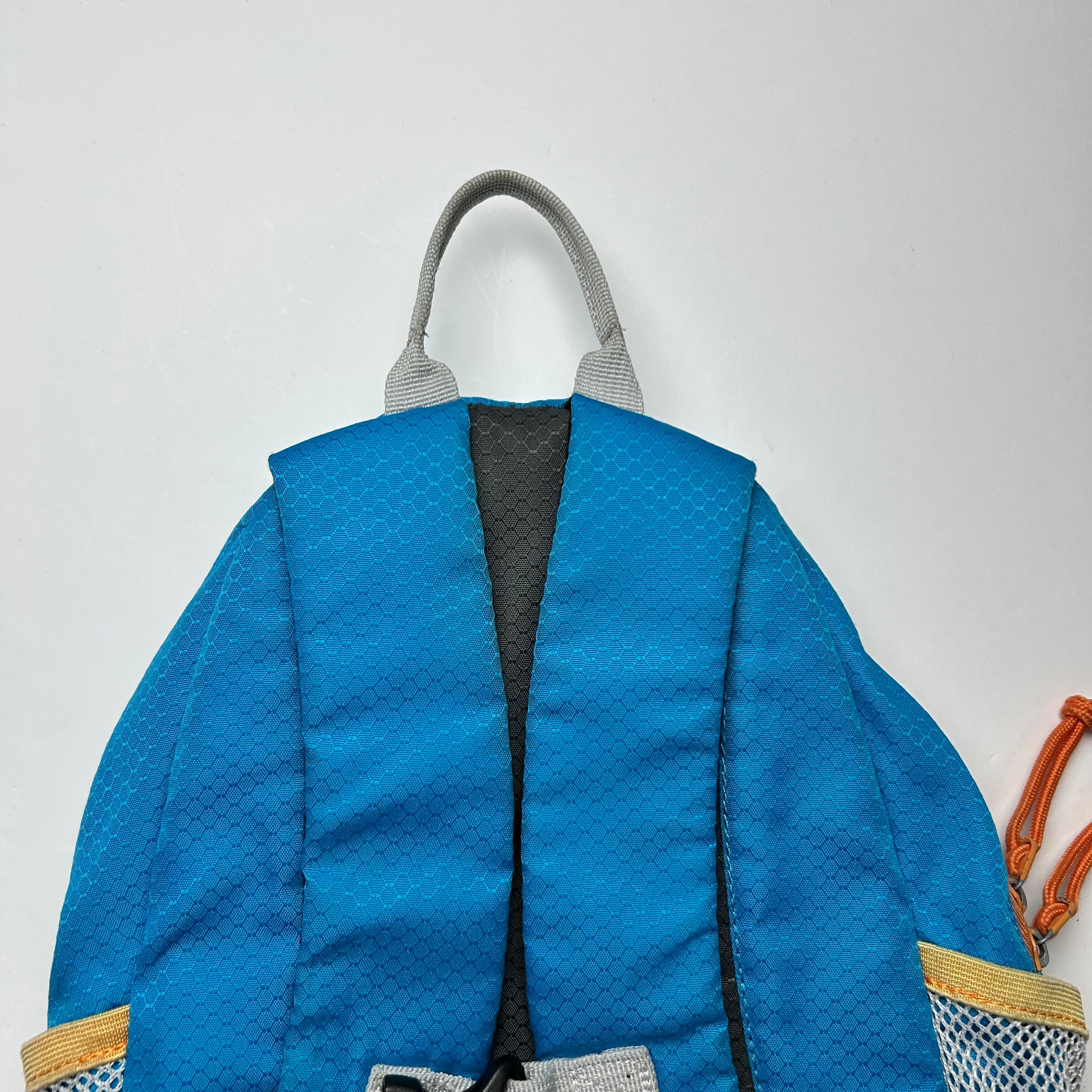 LOGOSのリュックになりまず。アウトドアブランドなので収納の数が多くて便利です。色はビビッドな青色がメインなのでデニムで合わせるのがオススメです。