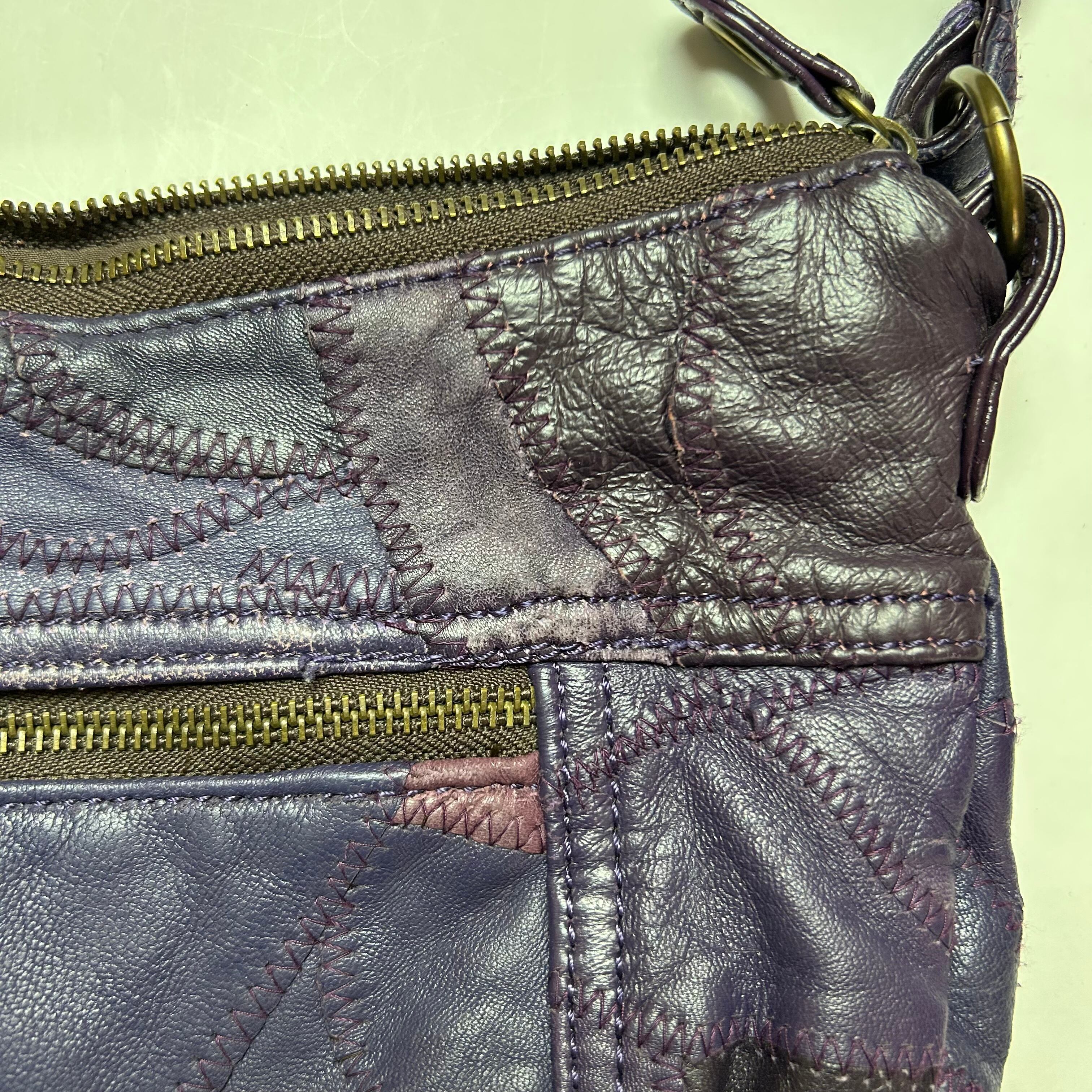 ツギハギのようになったショルダーバッグです。カラーの基調はパープルなのでオールブラックなどの時に使うと一気に雰囲気が出ます。