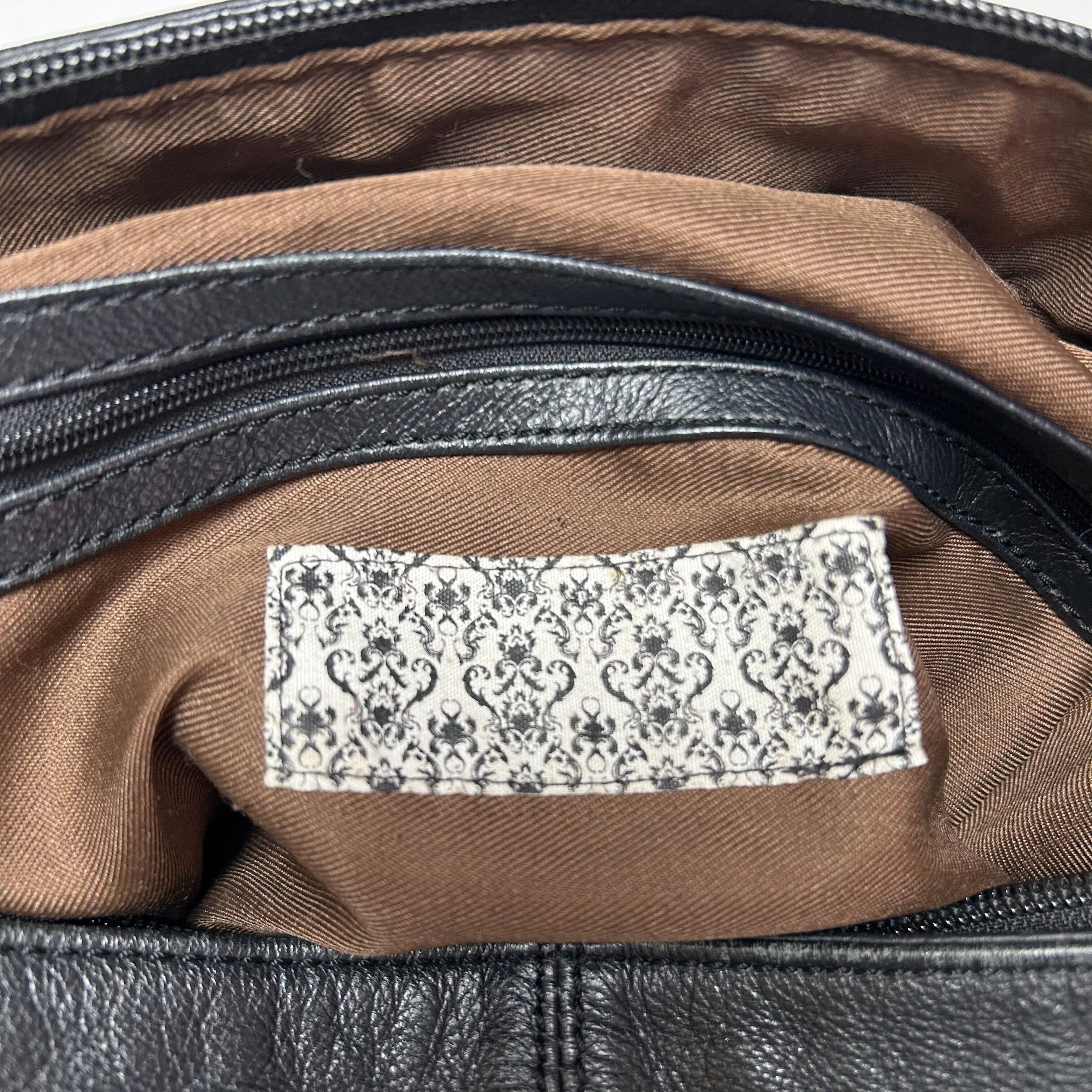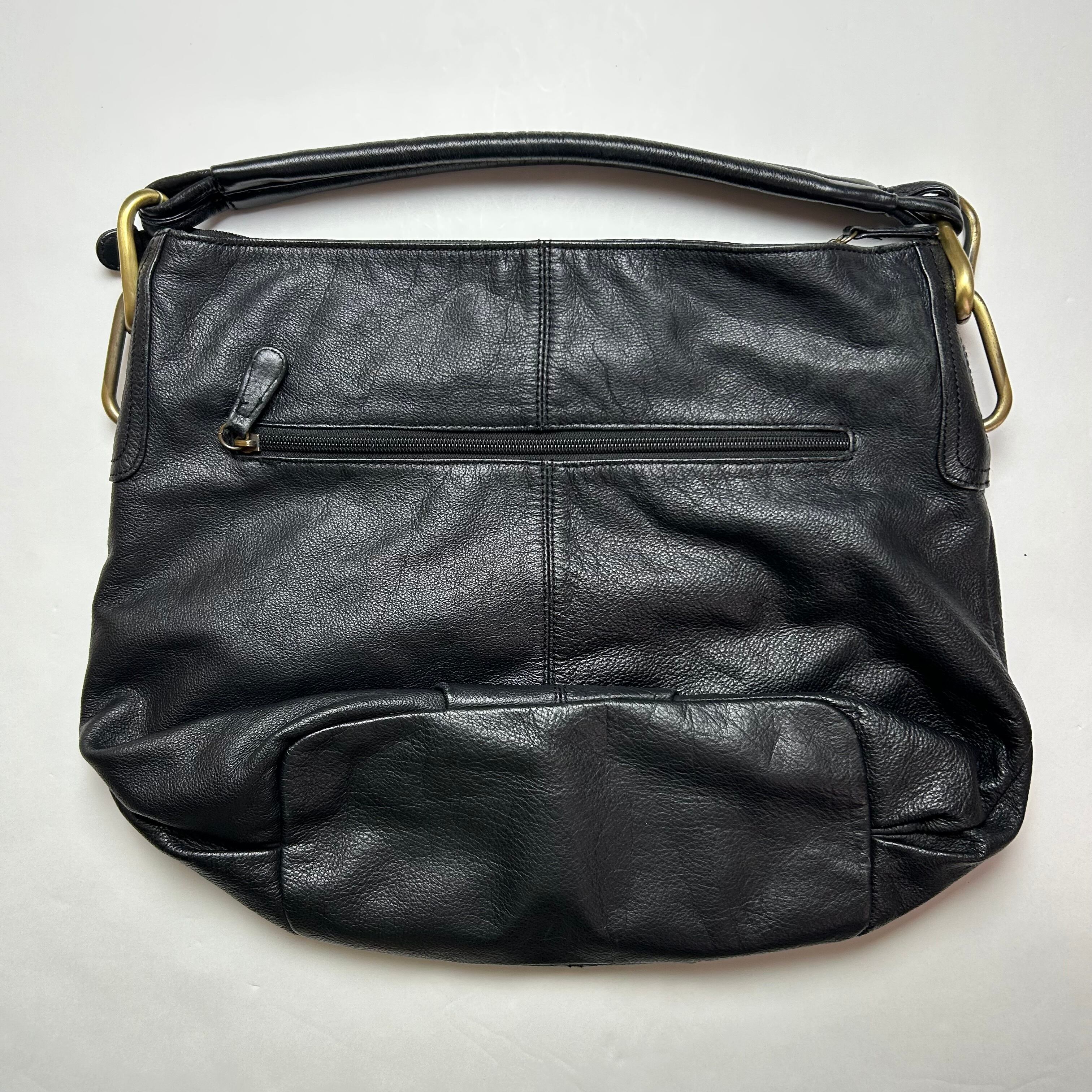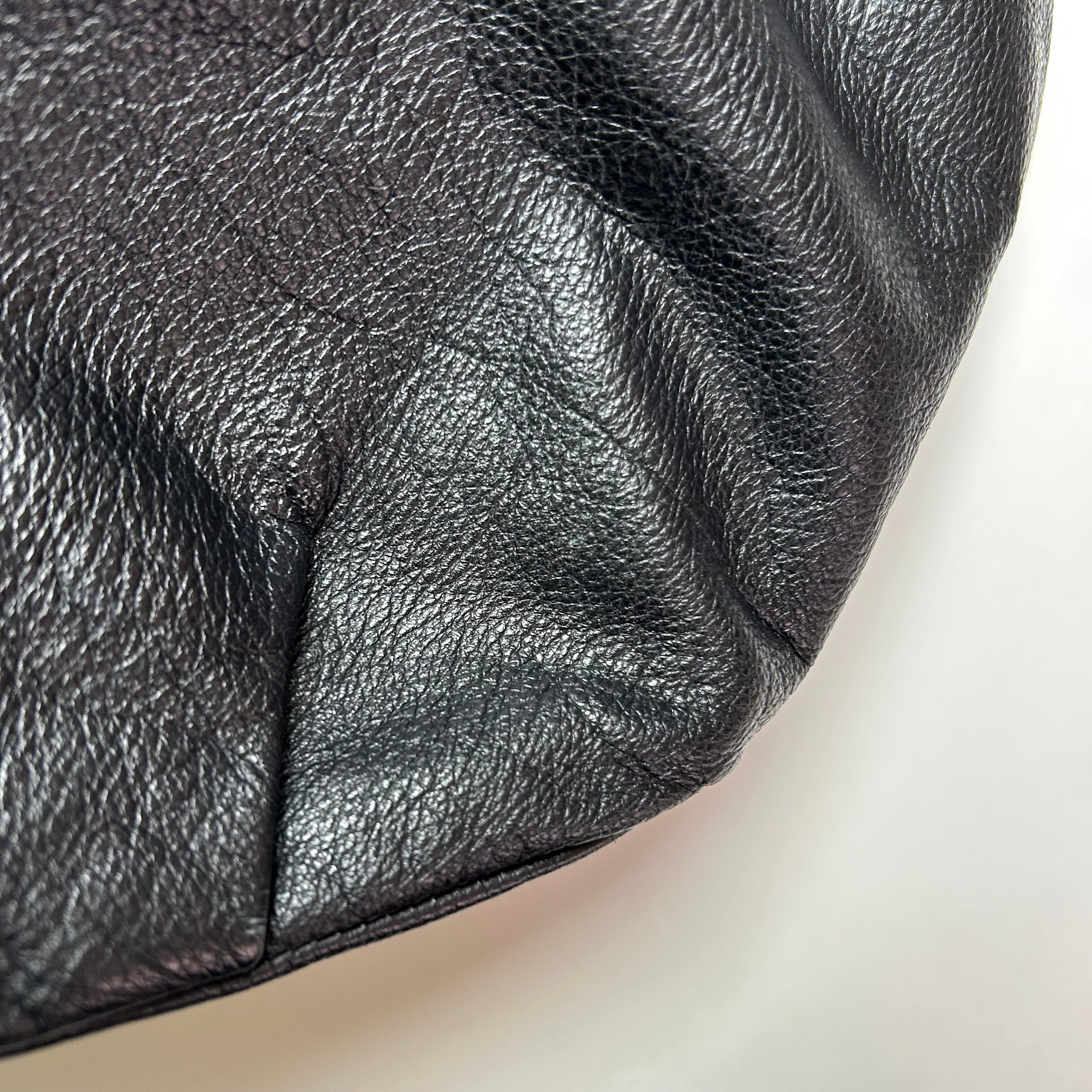 レザーの肩がけのショルダーバッグです。カラーはブラックです。内容量は問題なくいっぱい入ります。オールブラックにこのバッグで完璧です。