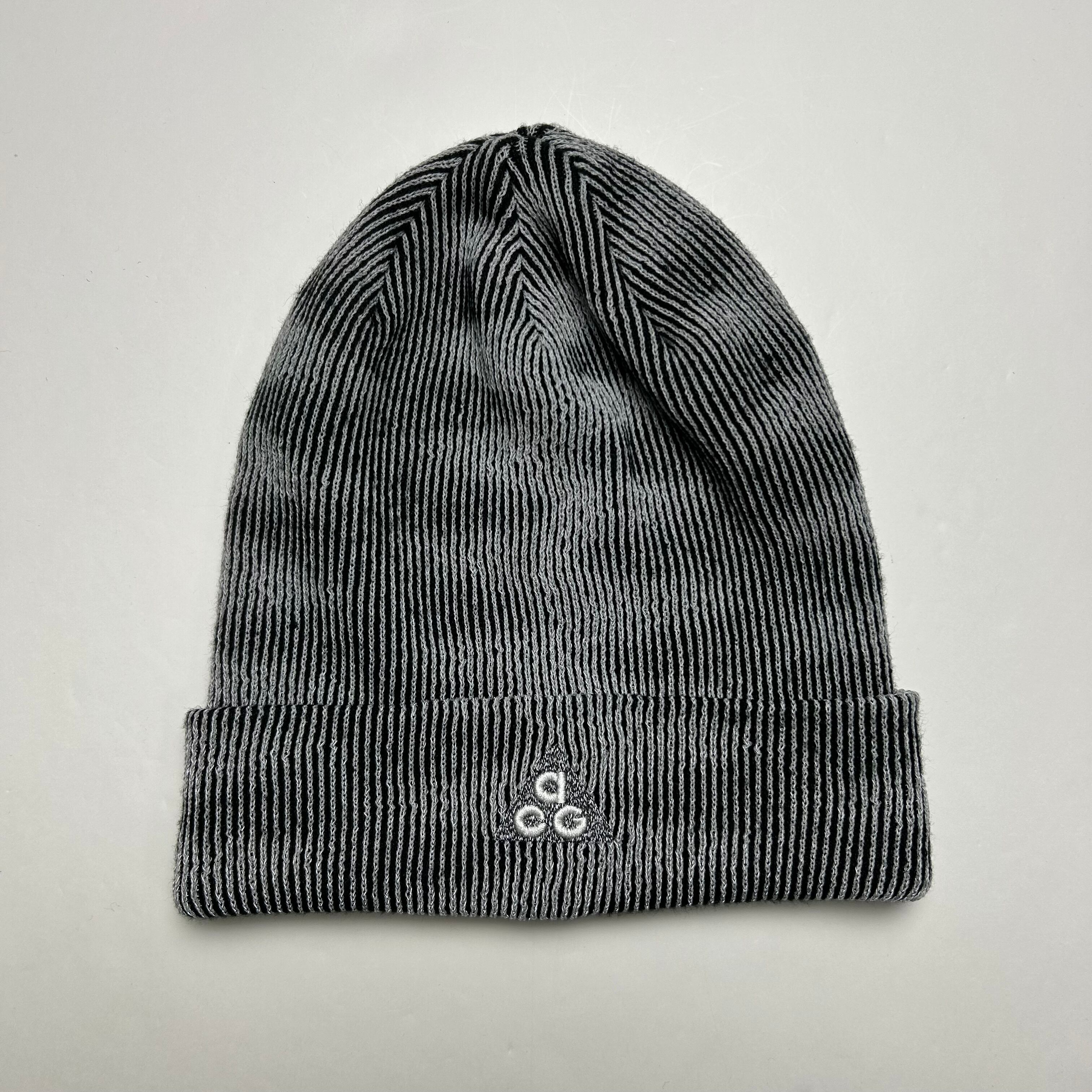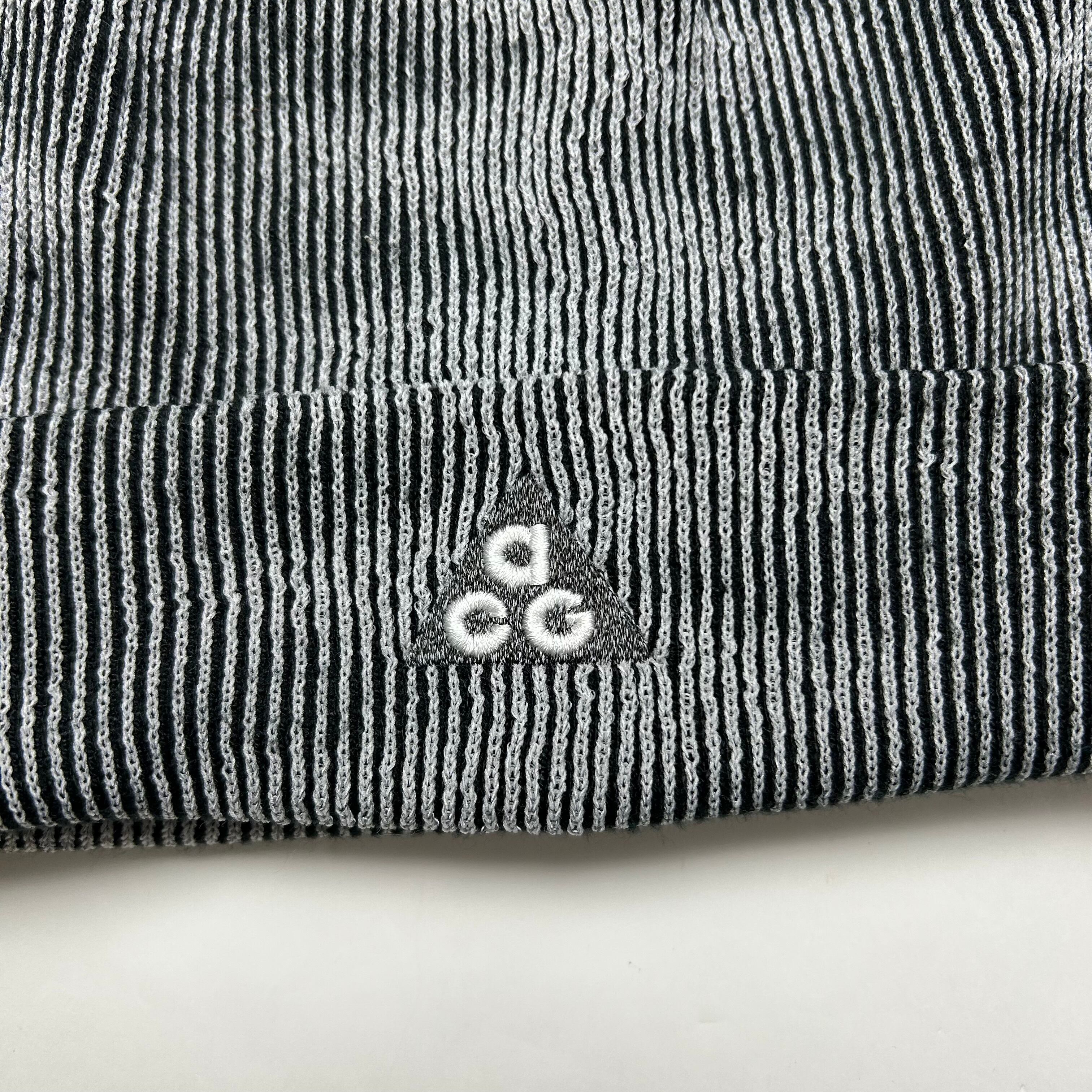 NIKE ACGのニット帽です。グレーとブラックのストライプのようになっていて角度によって見え方が変わります。