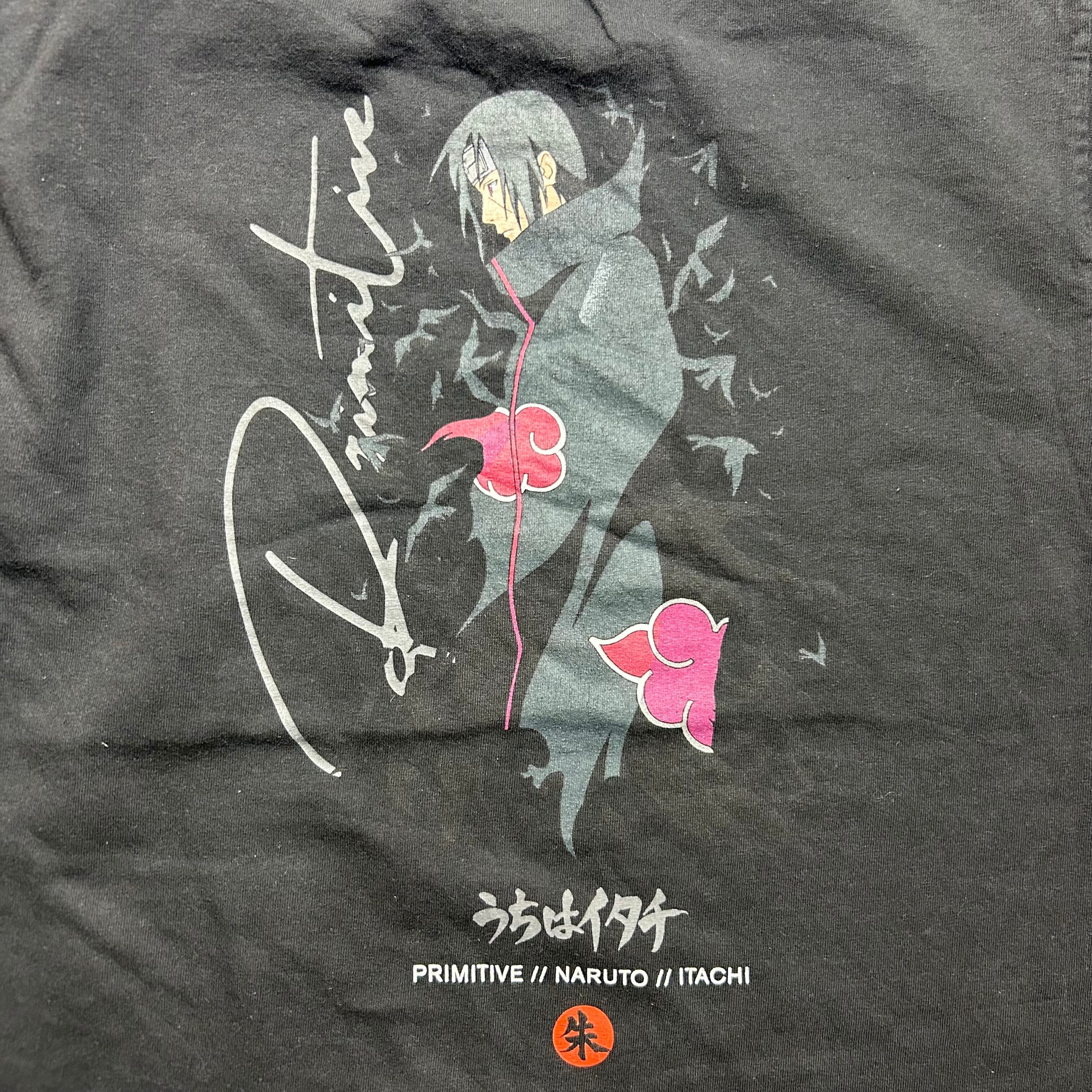 背面には、暁の装束を纏ったうちはイタチが、彼の象徴である「鴉(カラス)」と共に描かれた、ダークで洗練されたグラフィックがプリントされています。