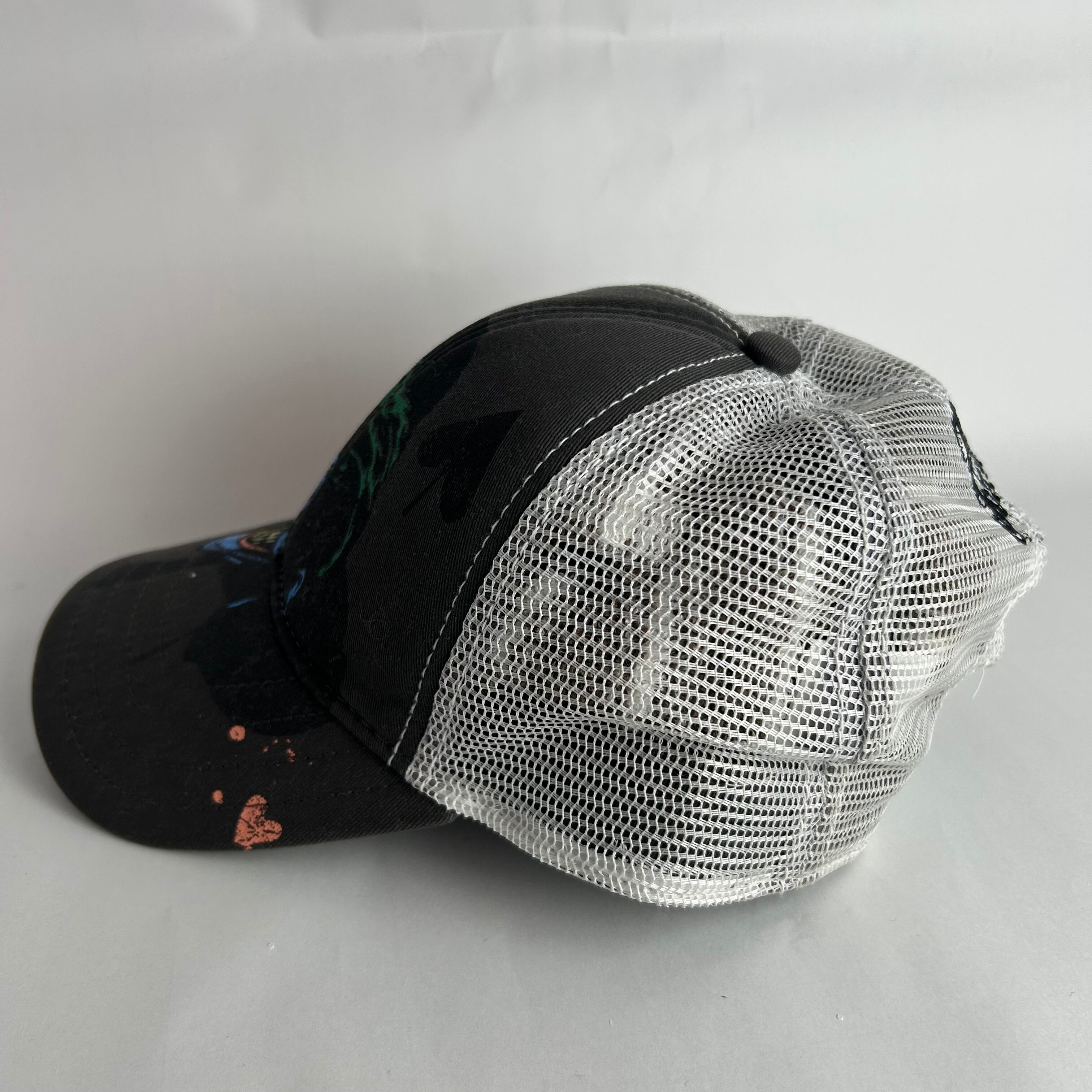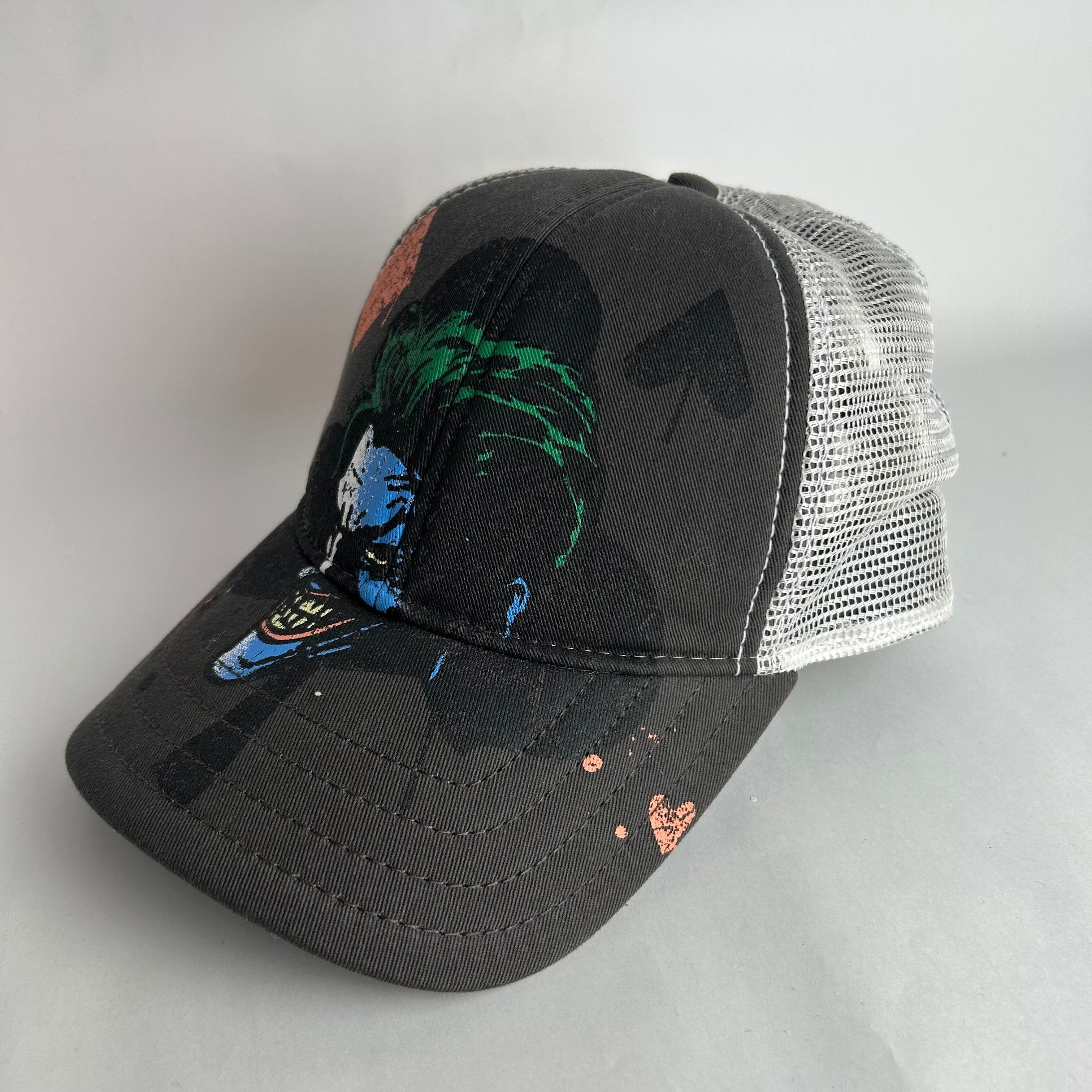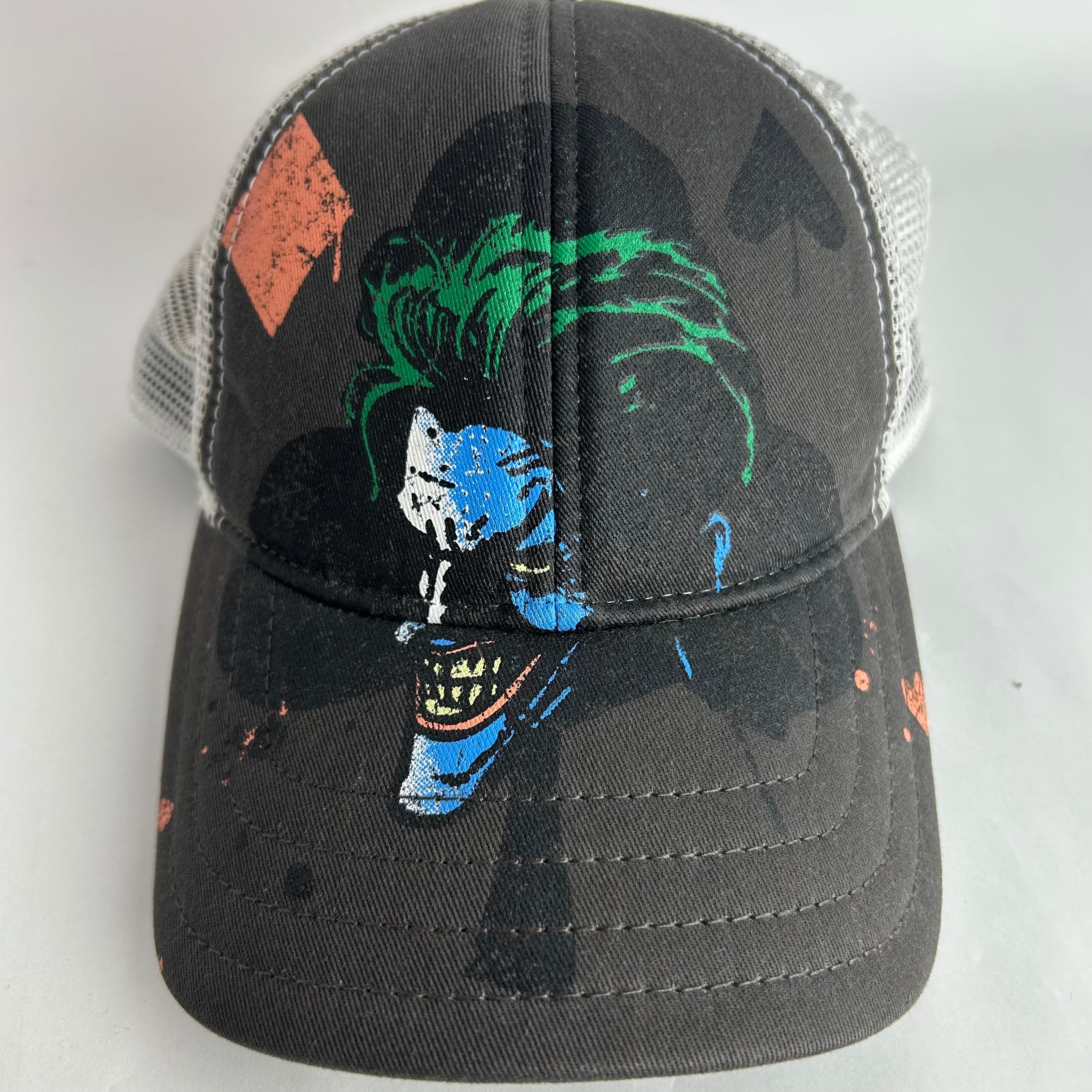 ジョーカーとトランプ柄を大胆に配した、アートな雰囲気のメッシュキャップです。