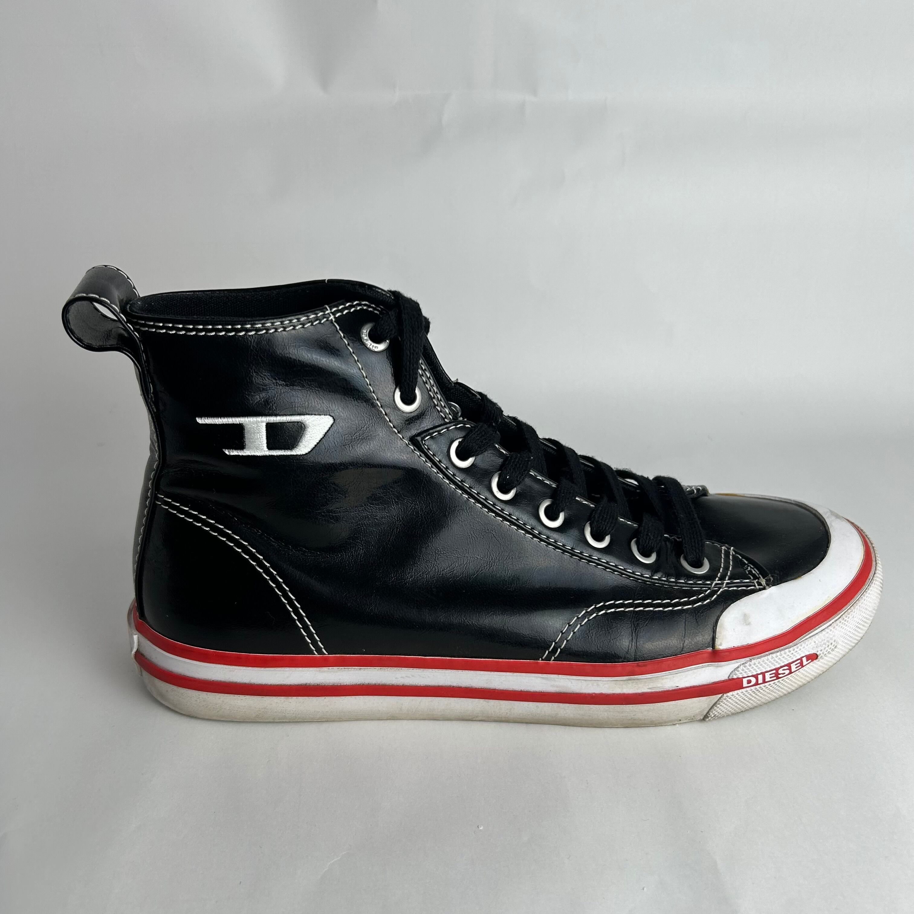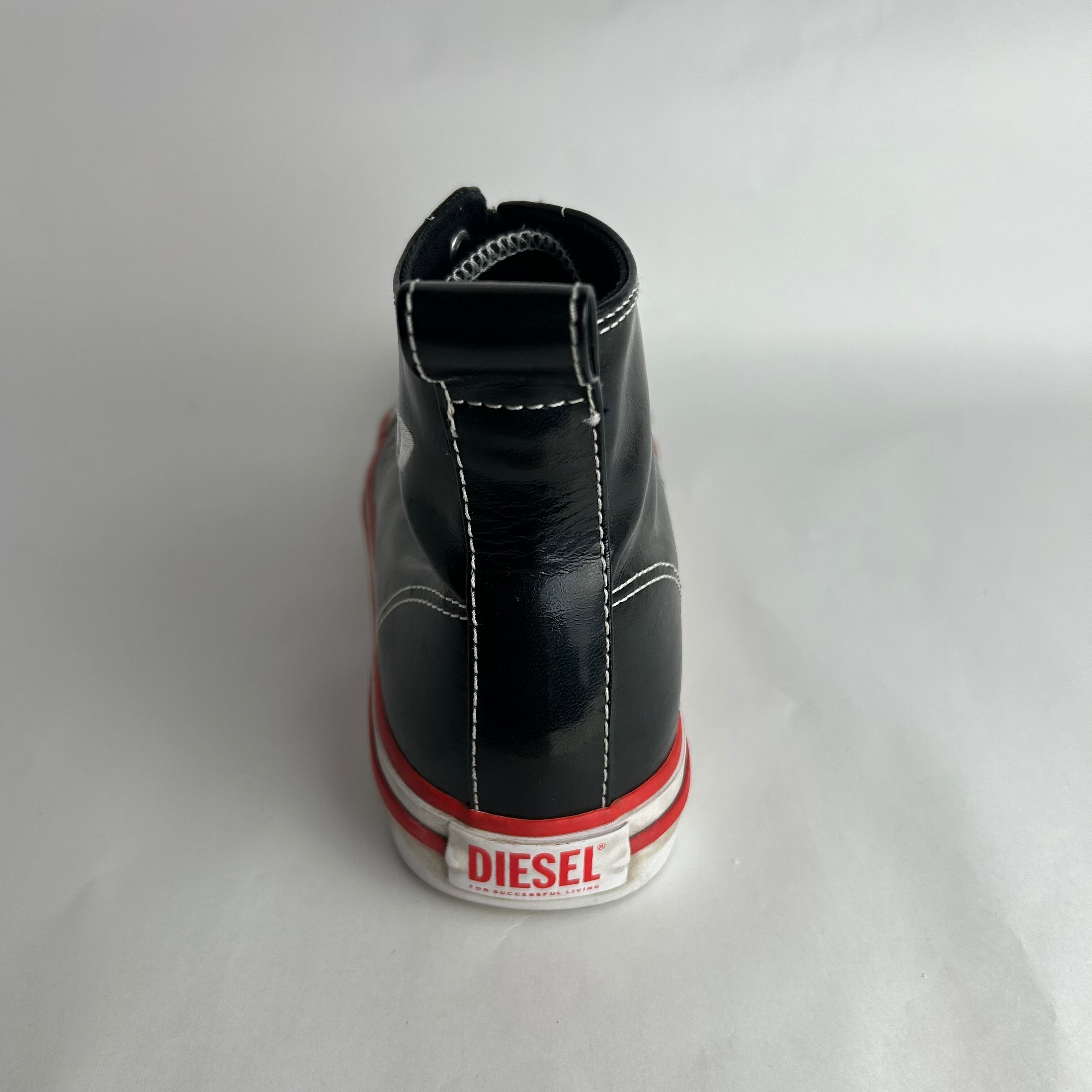 DIESELのS-ATHOS MIDです。アッパーにエナメル素材を使用しており、特有の艶やかな光沢感があります。